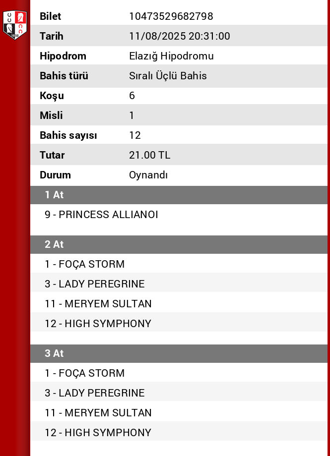 6.koşu : 2 DEA FORTUNA BANKO bu safkanın yanına at yazmaya kalkarsam yanarız 12 numaraya dıkkat at yazacaklar