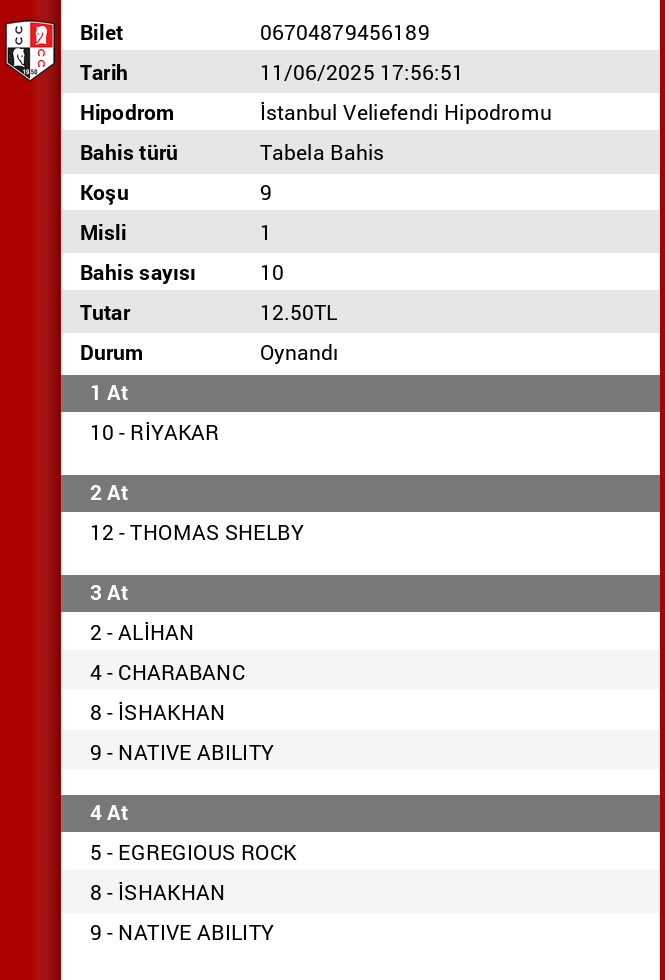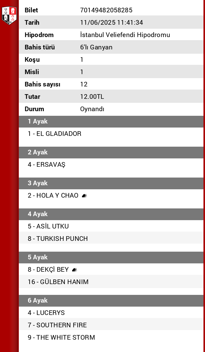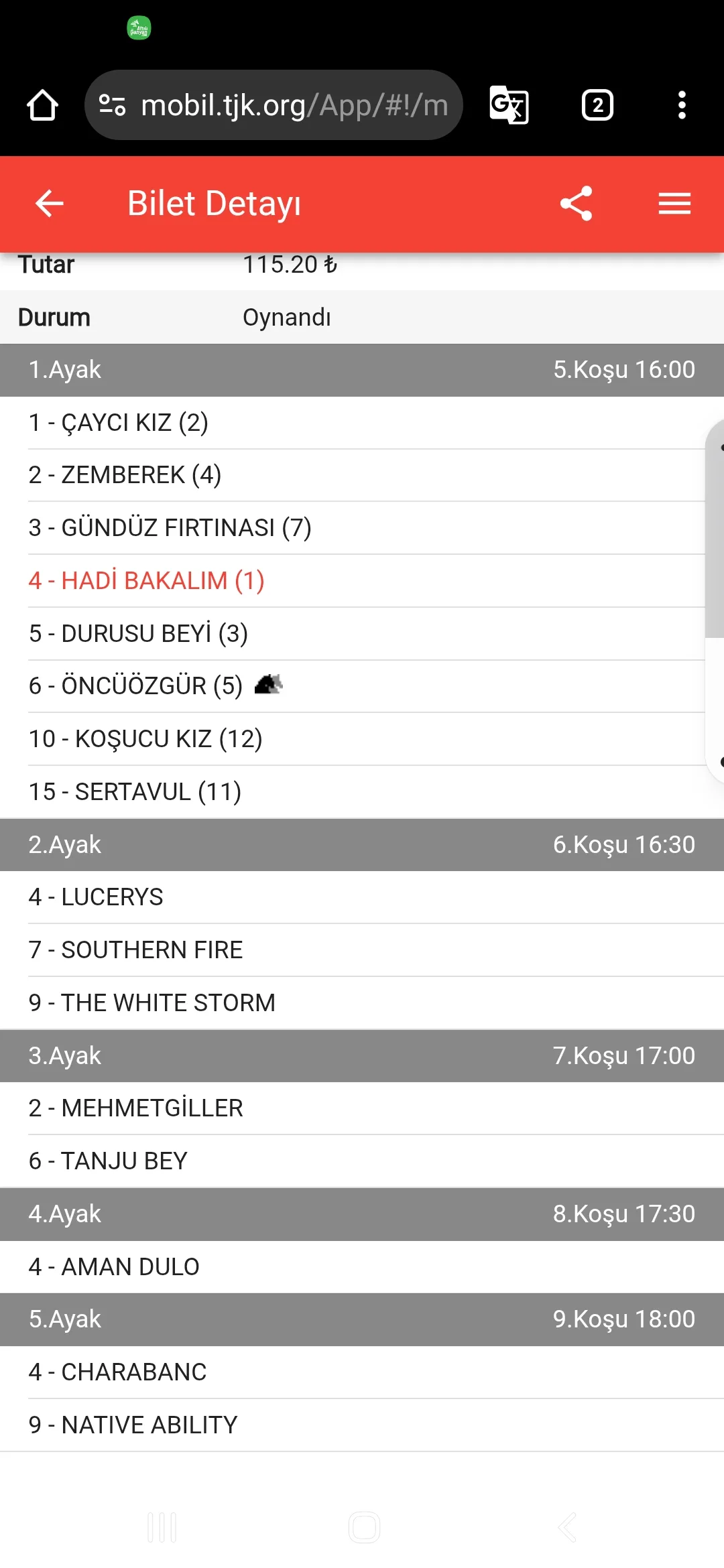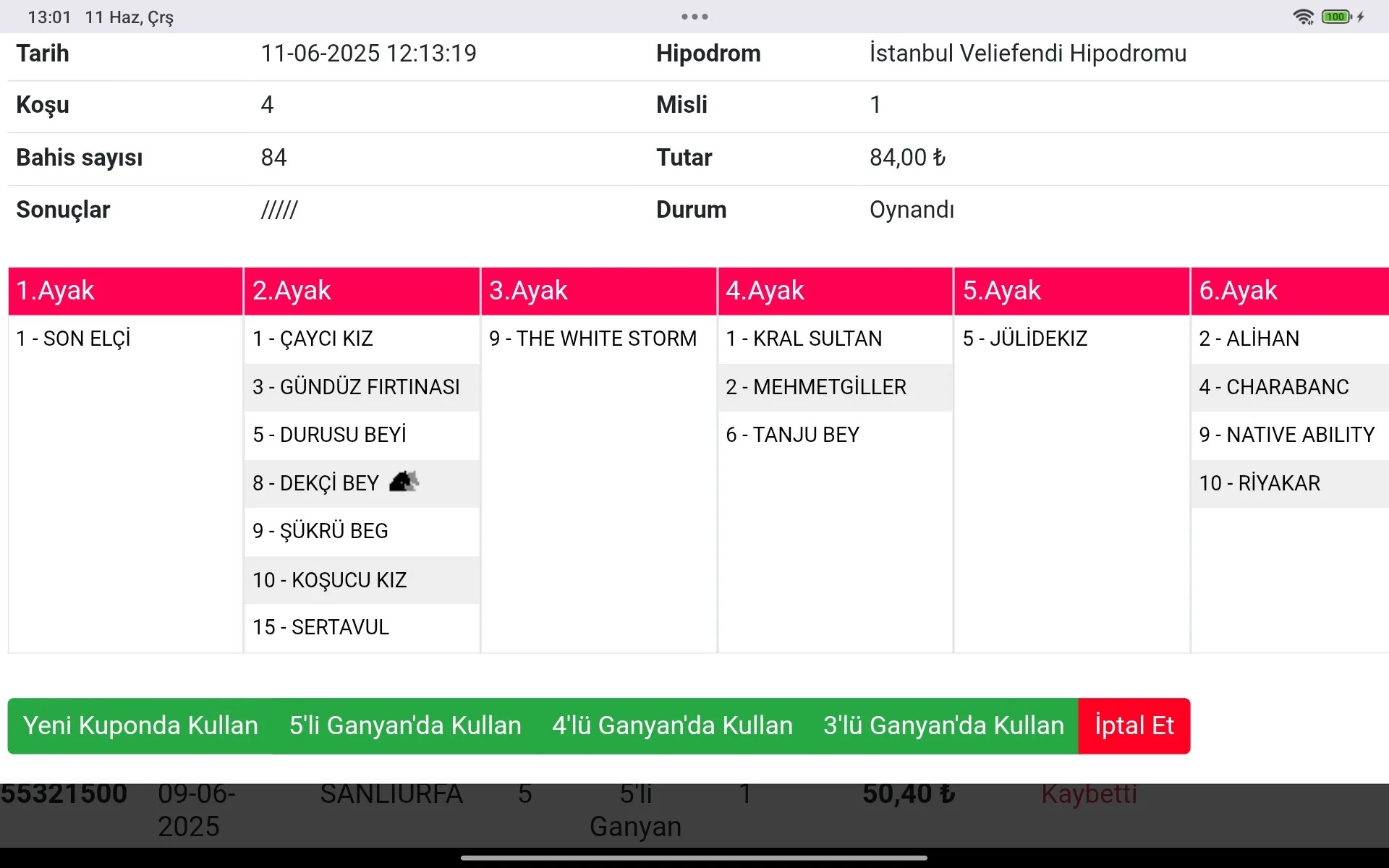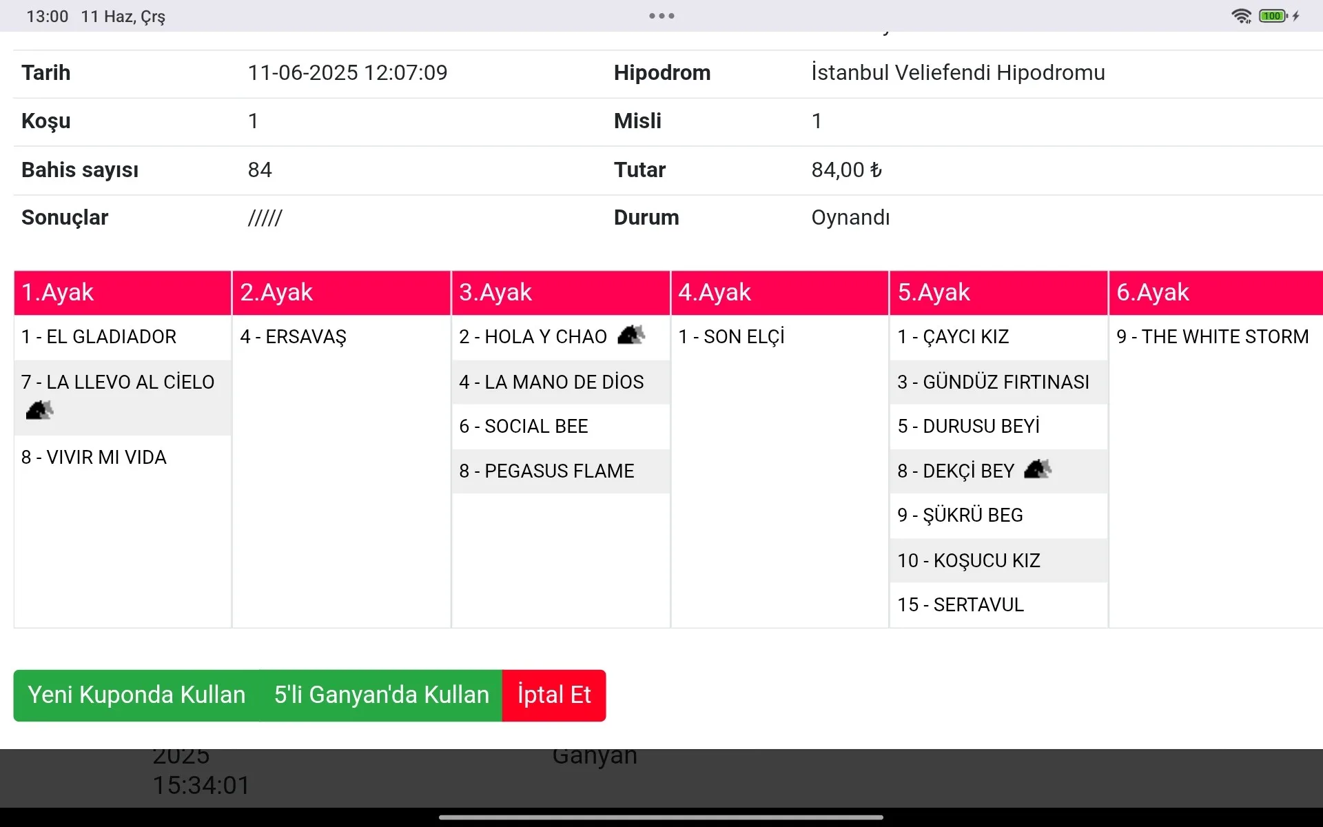 Bilet no 37759231771313 Bahis türü 6’lı Ganyan