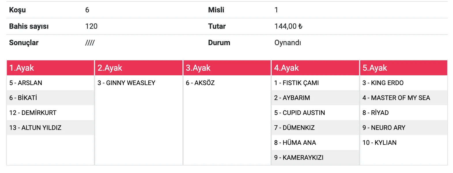 6’lı Ganyan (5-6-7-8-9-10)