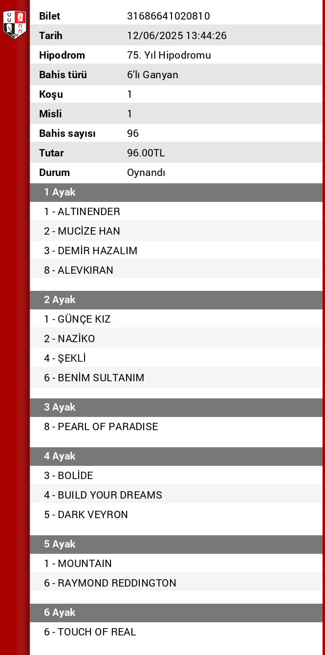 4.AYAK: 6 TOUCH OF REAL’in İstanbul’da şansı yaver gitmiyor. Sevdiği pistte şansı yüksek olup banko tercihimdir.