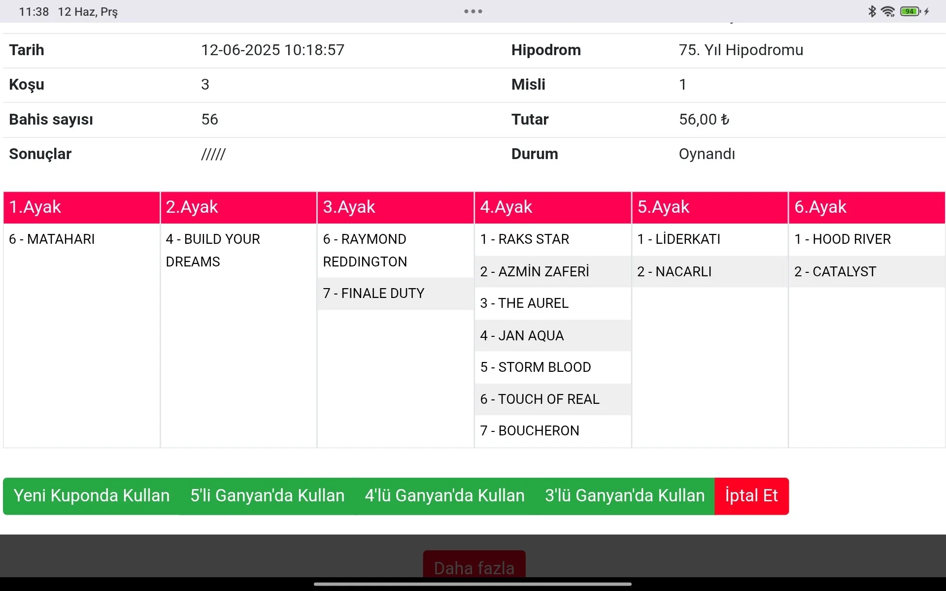 Programı beğenmedim 3 tekli kuponu oynadım. Ufak yeter bugüne.