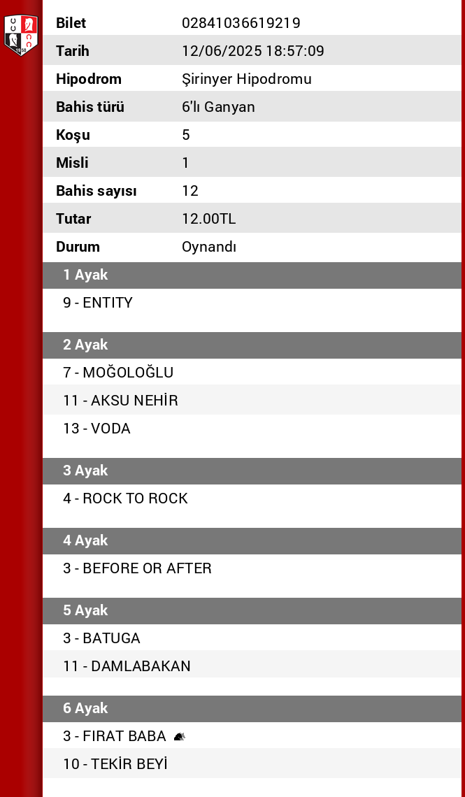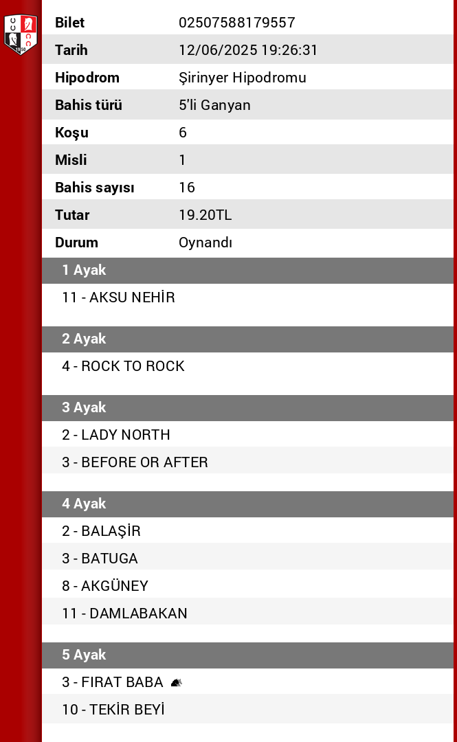6.AYAK: 1 KIZILVAZO, 2 MERTCAN TAY, 10 BERTAN, 13 VODA, 7 MOĞOLOĞLU sıralmam.