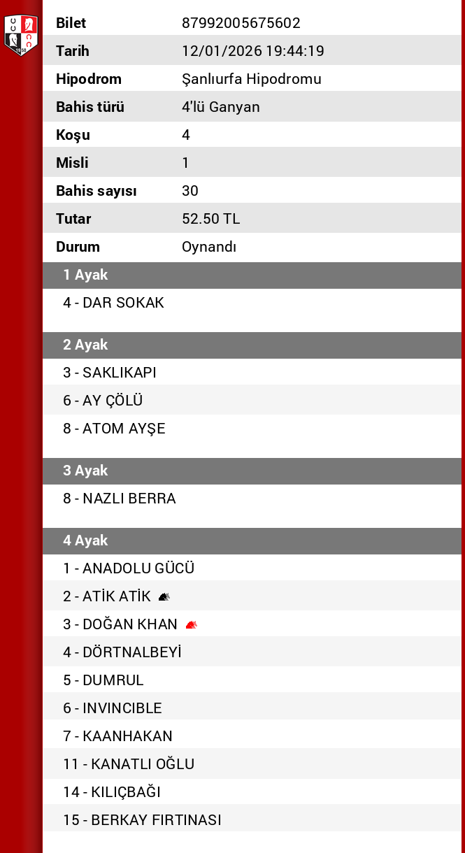 1.AYAK : Mesafe kısa one gıdecek atlar var dogunun karatası guzelmıne serhanbatur gıbı bırısı bıtırebılır ben kapattım
