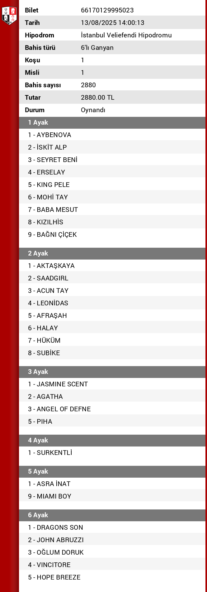 5’li Ganyan (2-3-4-5-6)