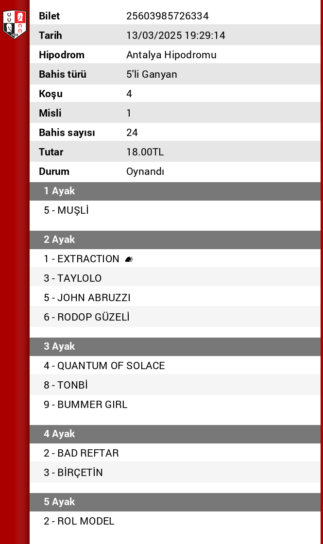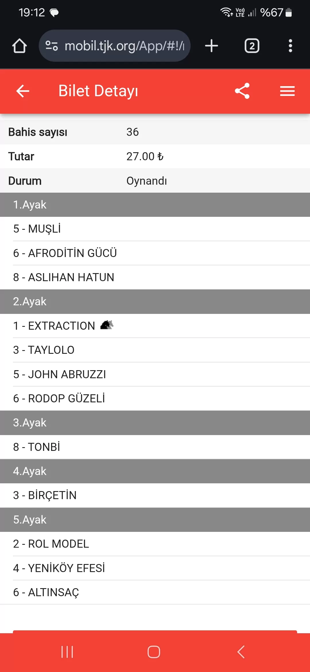 Bilet no 66731769658000 Bahis türü 6’lı Ganyan