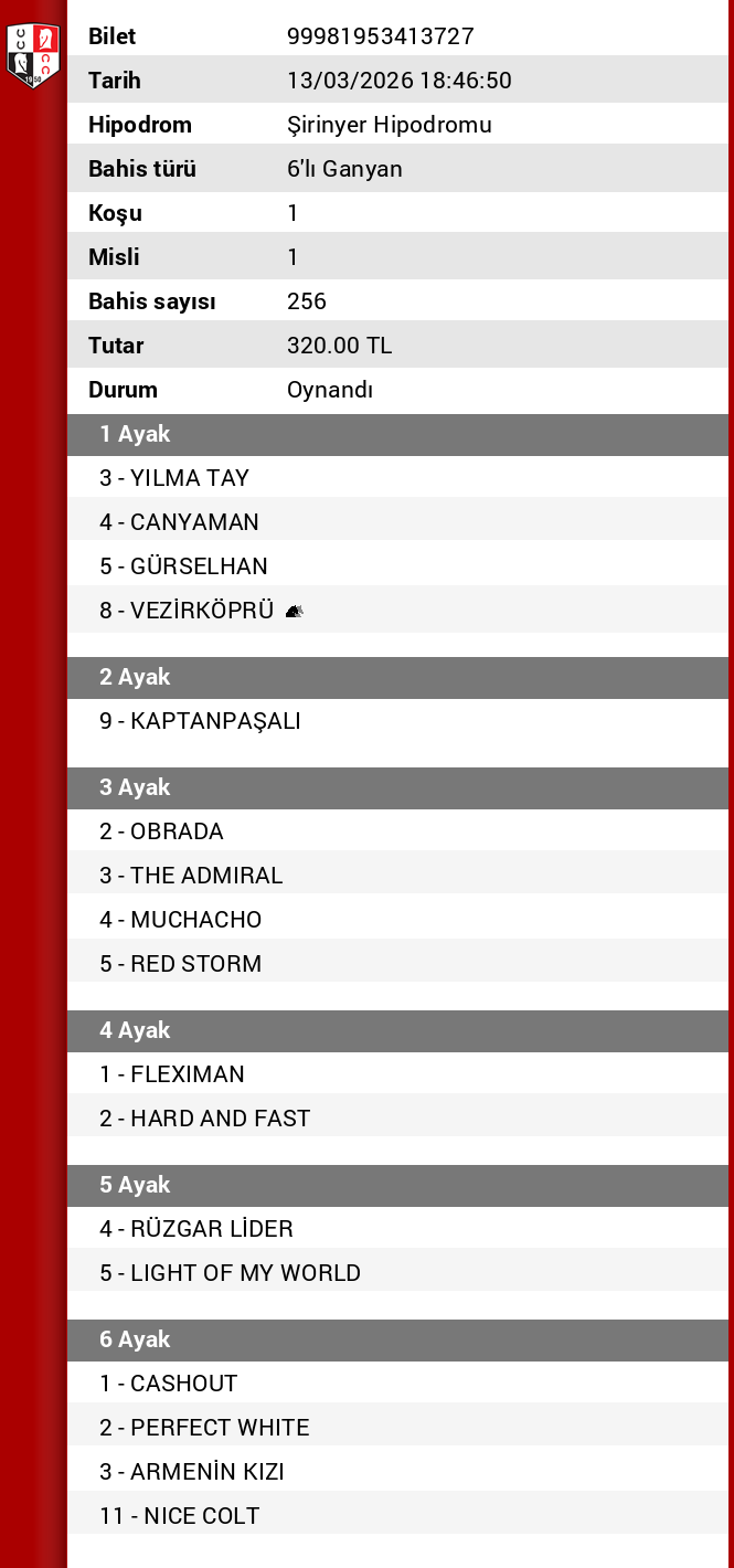 6.kosu (3) Armenin kızı son yarışında ki duruşunu beğendim Üzerine koymuş geriye gitmemesi gerekir kazanmalı