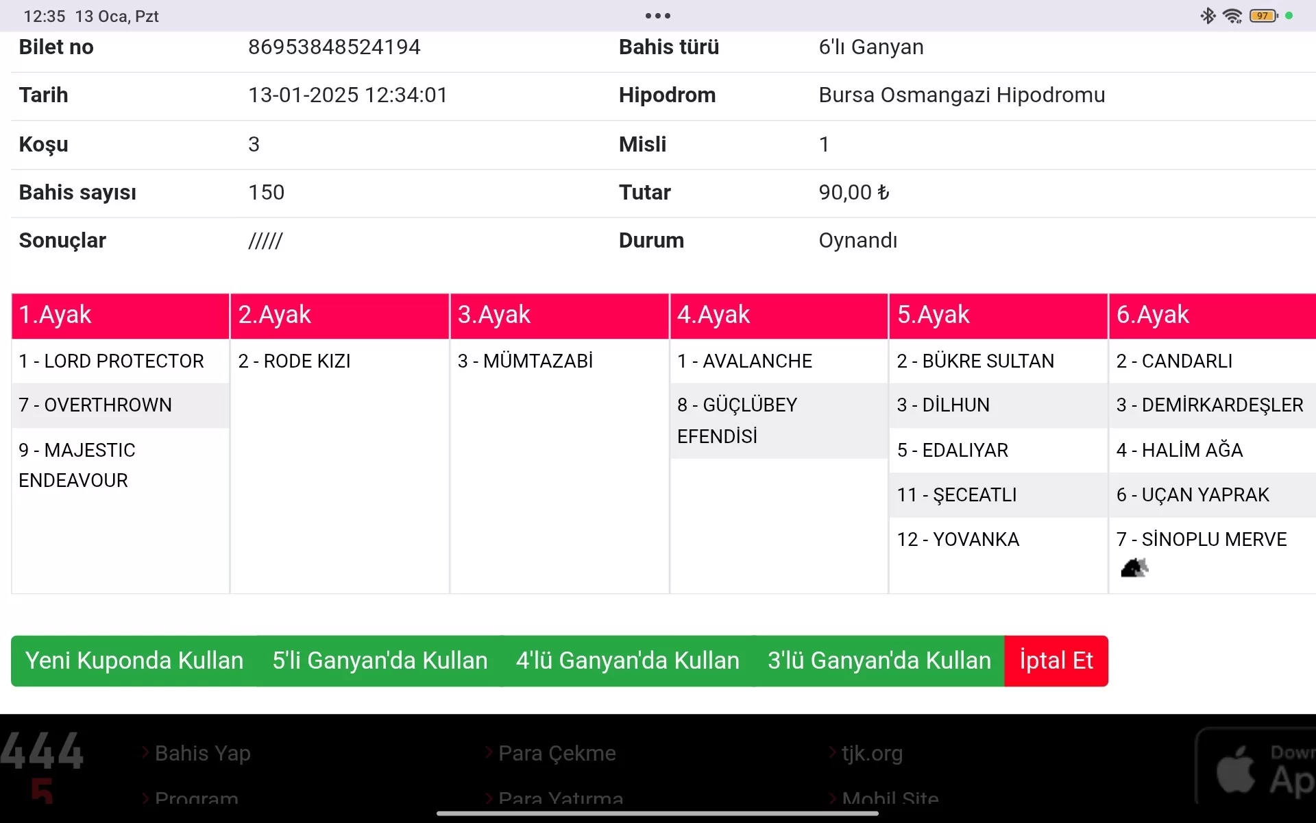 4.KOŞU: Günün ikinci ayağı zor ve kalabalık bir koşu, hiç uğraşmadan kendimce kazanma şansını yakın gördüğüm isimleri sıraladım ve HEPSİ olarak ayağı kapadım.
