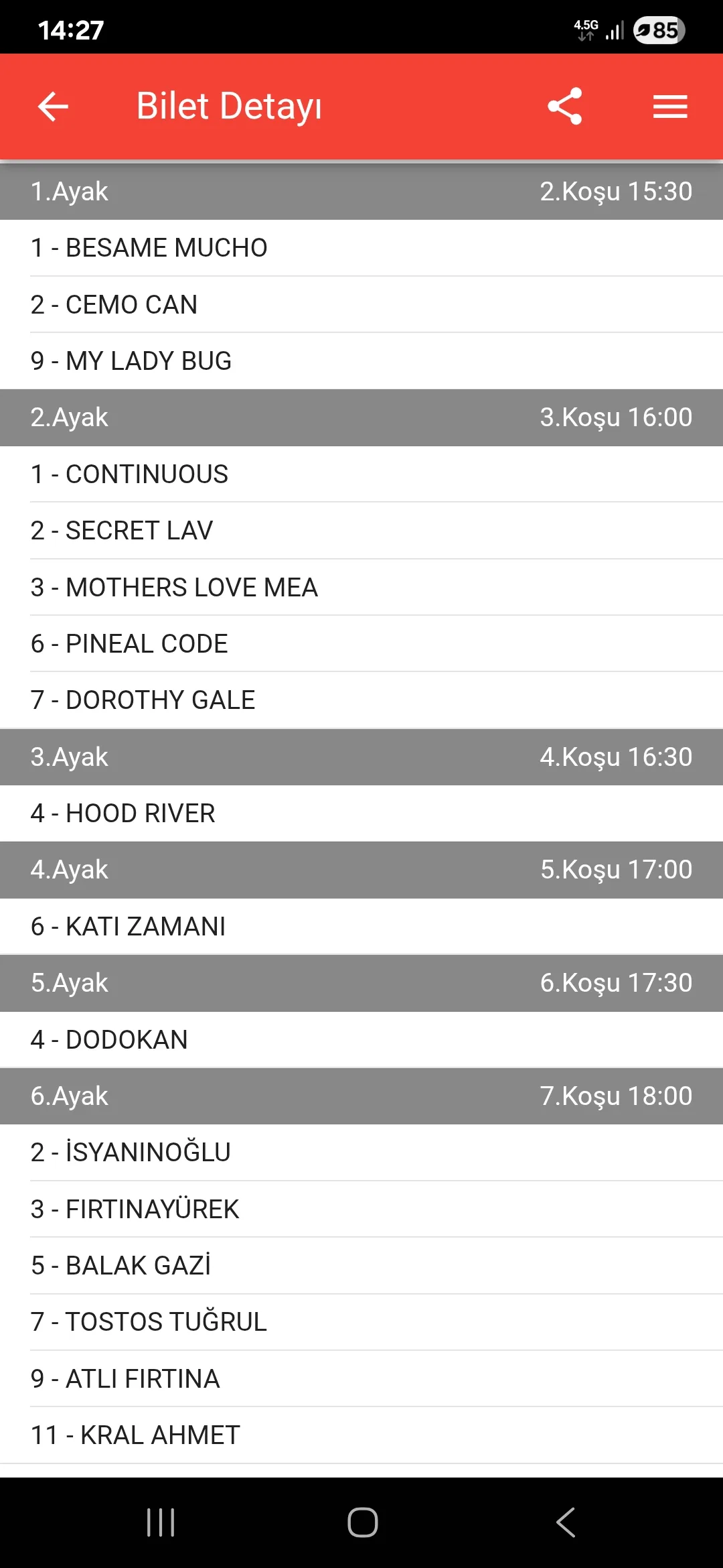 Arkadaşlar naçizane fikrimi paylaşmak istedim 1 ayak 9 my Lady bug son ayak 5 balak gazı banko herkese iyi sanslar