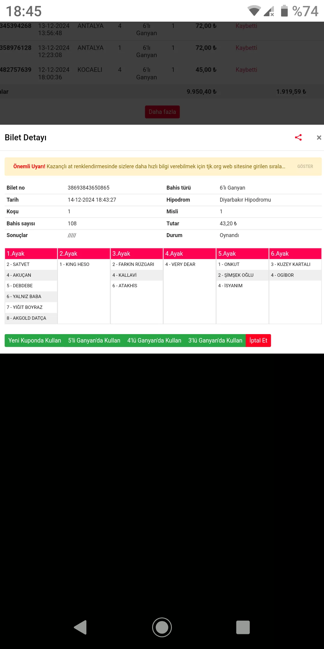 4.AYAK : 1 LION ROBERO iyi at ama son yarış hayal kırıklığı idi şimdi şanslı 2 ROTA SHOW dikkat son olarak 4 VERY DEAR