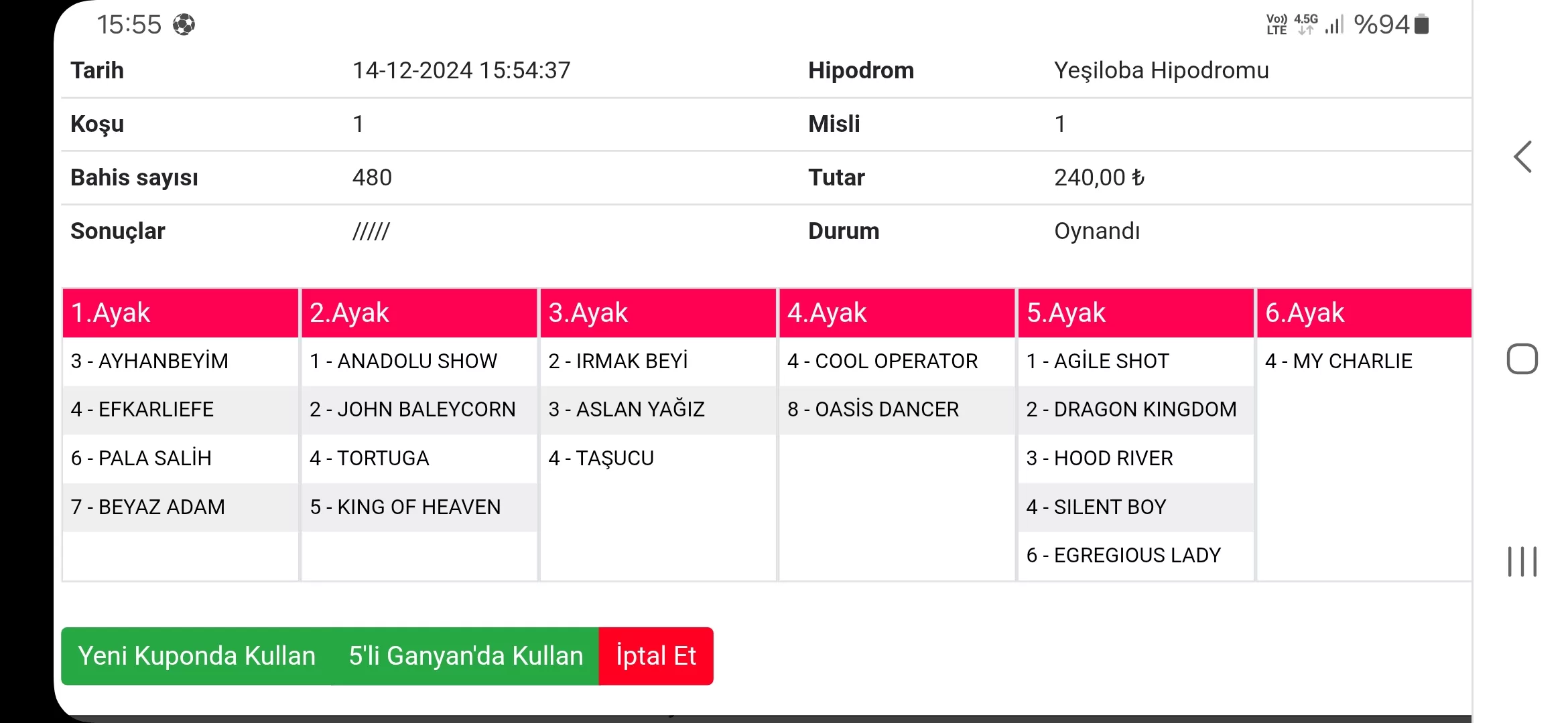 Black ruby benim de sürpriz beklediğim bir isim. At atı geçer ama magic selectra bende kazanmış koşuyor. Son ayak 5,7,8,10 dışı benim için sürpriz olur. Make a fire da gelirse altılı ölebilir diye kararsızım