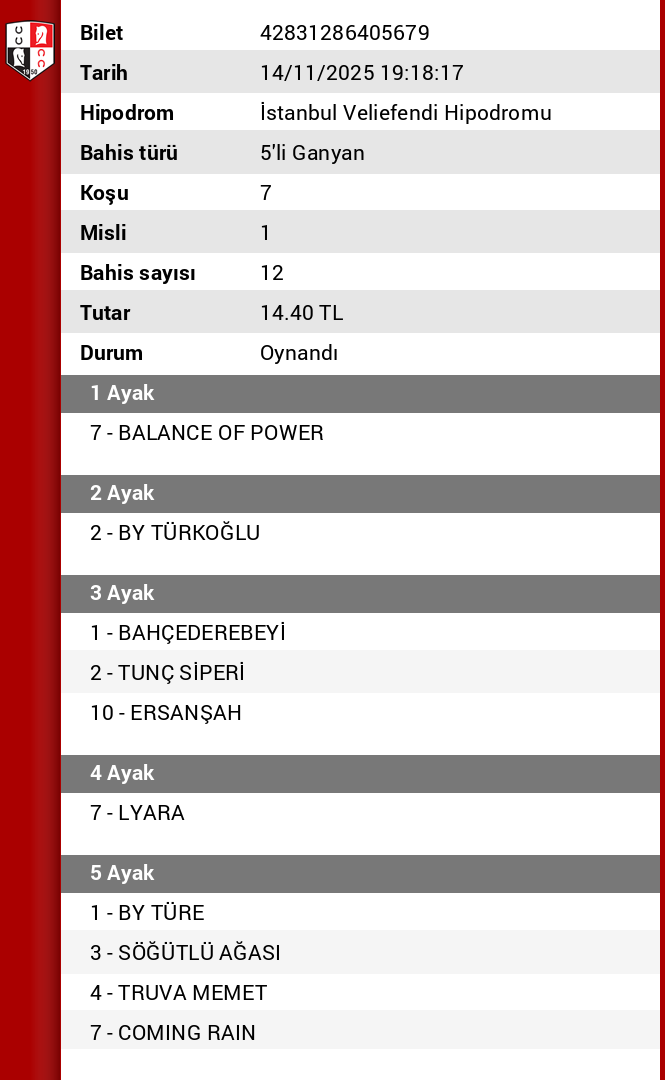 11. Koşu : Uygun rakipler yanında koşacak olan 3-SÖĞÜTLÜ AĞASI favorim. 4-TRUVA MEMET ve 1-BY TÜRE rakipler.