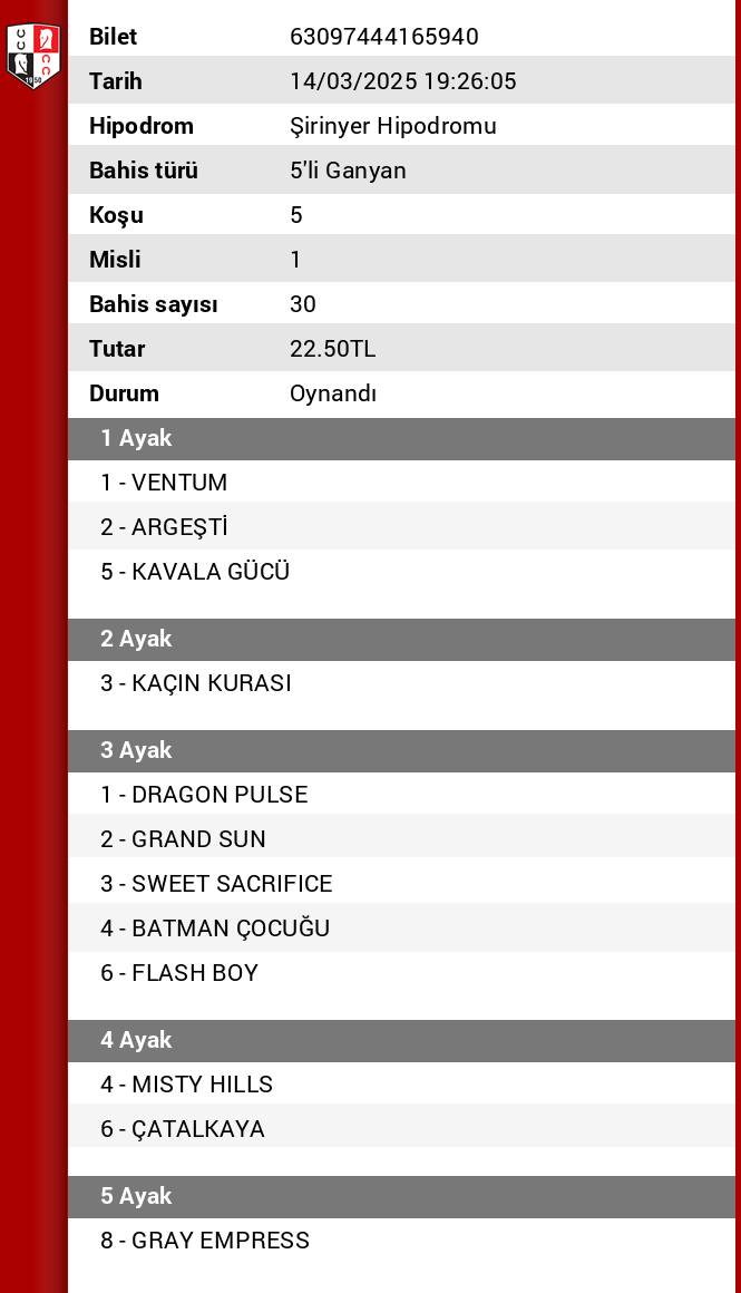 5.KOŞU: : Çim pistteki maiden koşu için kalitesiyle SAILORS PATH kazanmasını beklediğim ilk isim, sonrasında ARGEŞTİ, ONE MORE SECRET, KAVALA GÜCÜ ve MASTER SHIFU da yazılarak bu ayak geçilebilir.