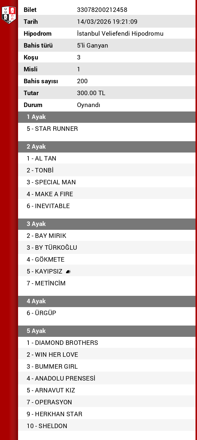 5.ayak (2) UDARHAN son yarışını çok beğendim öncelik gelemz ise sonuçta Maiden her atın geliri var risk almiyacagim