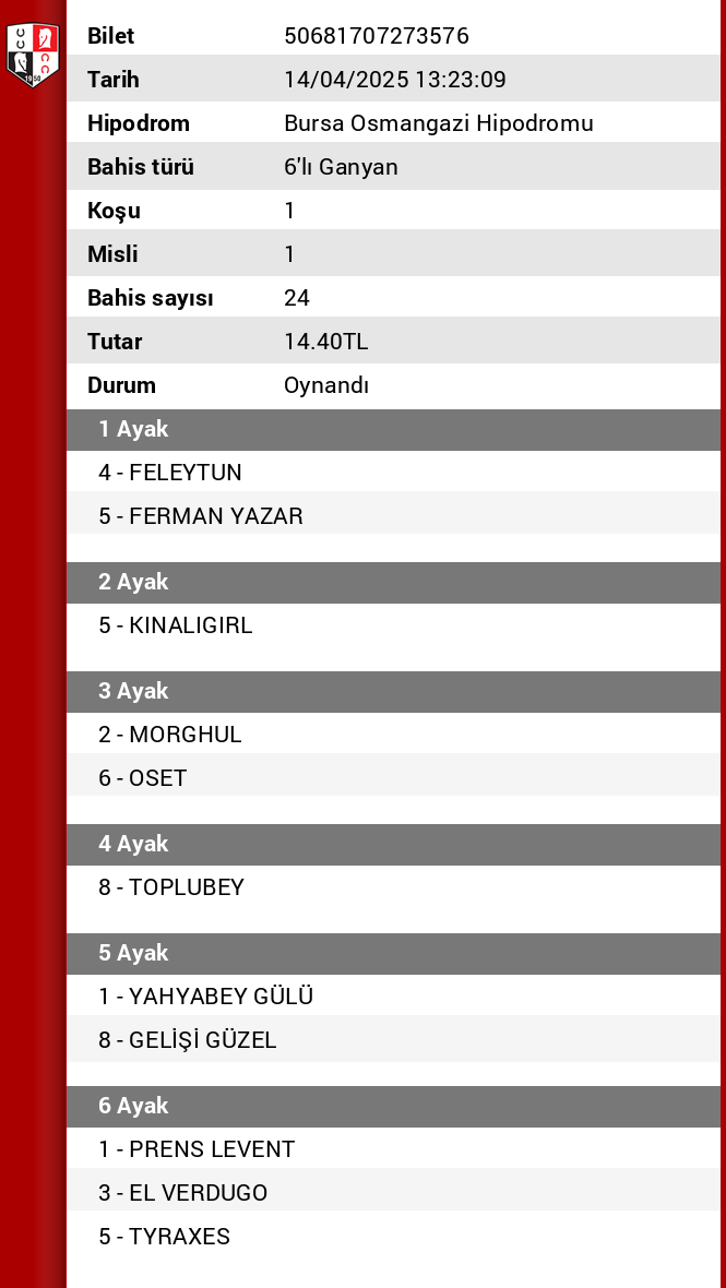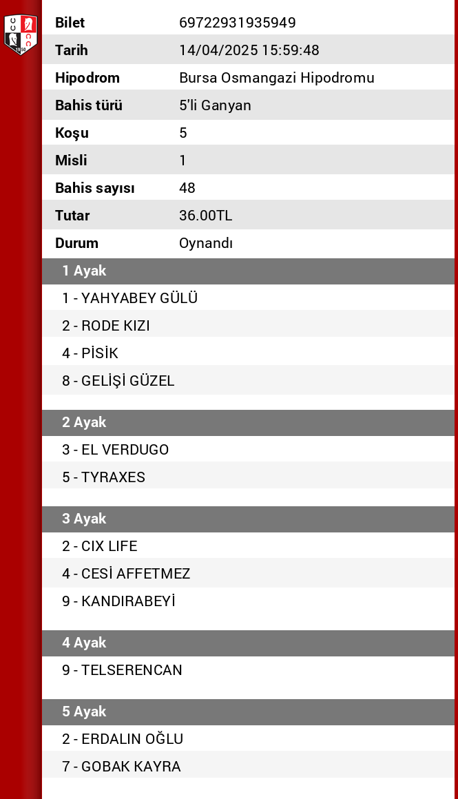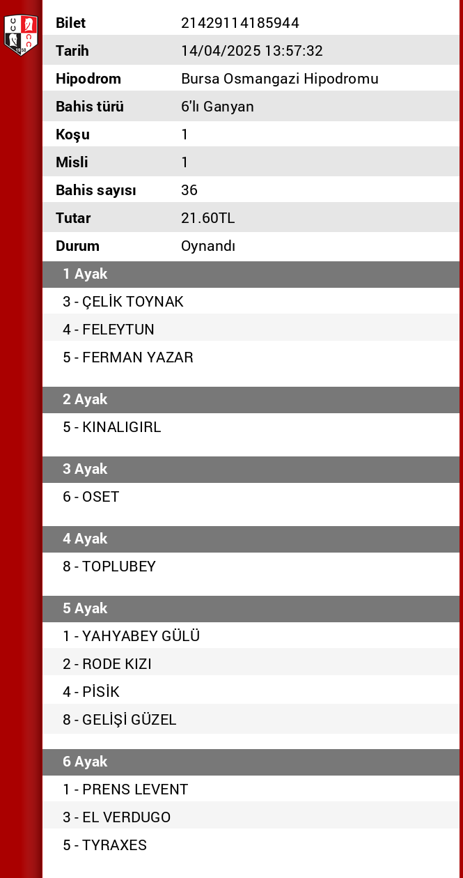 Bahis sayısı 96 Tutar 57,60 ₺