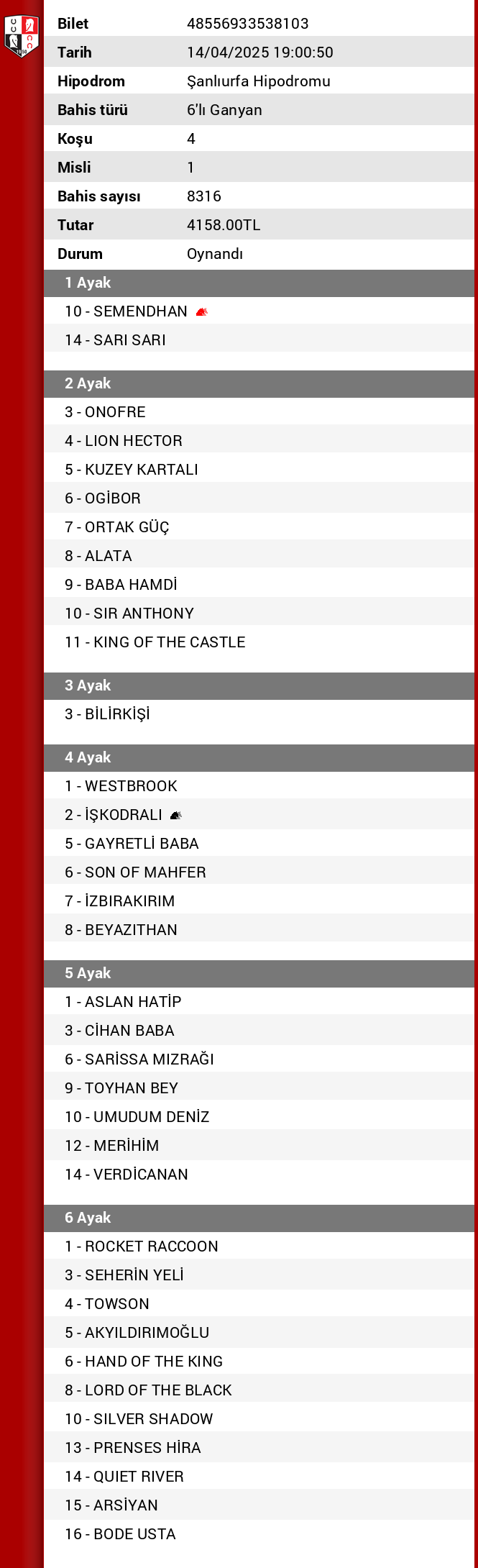 Benim şöyle bir oyun şansım var bugün tek atarım 2.olur bir dahaki koşusunda kazanı😬