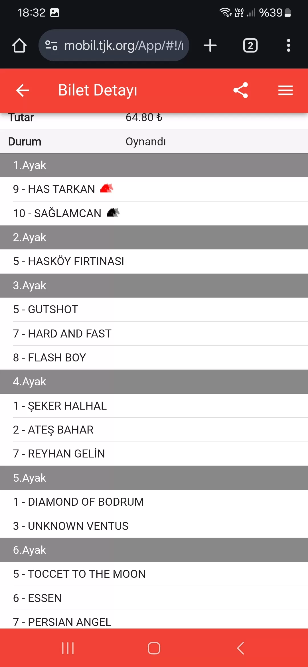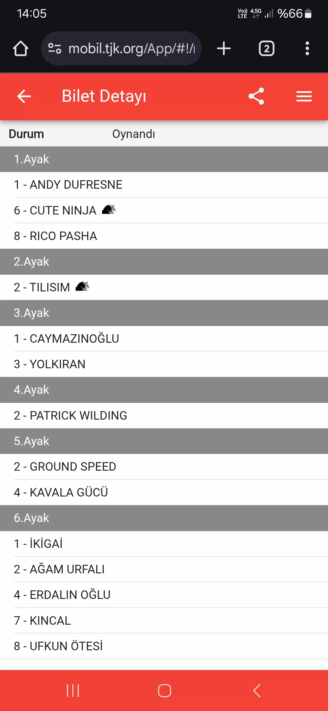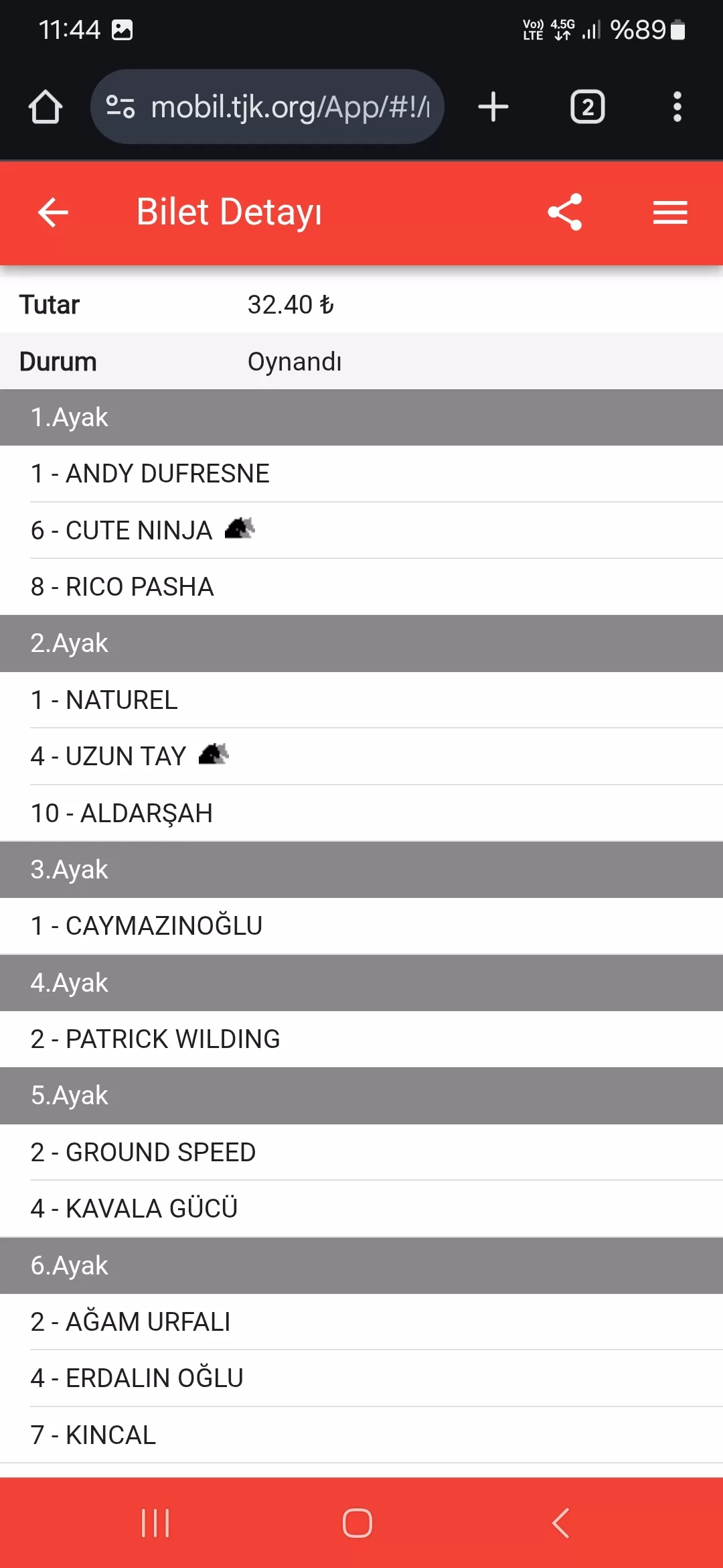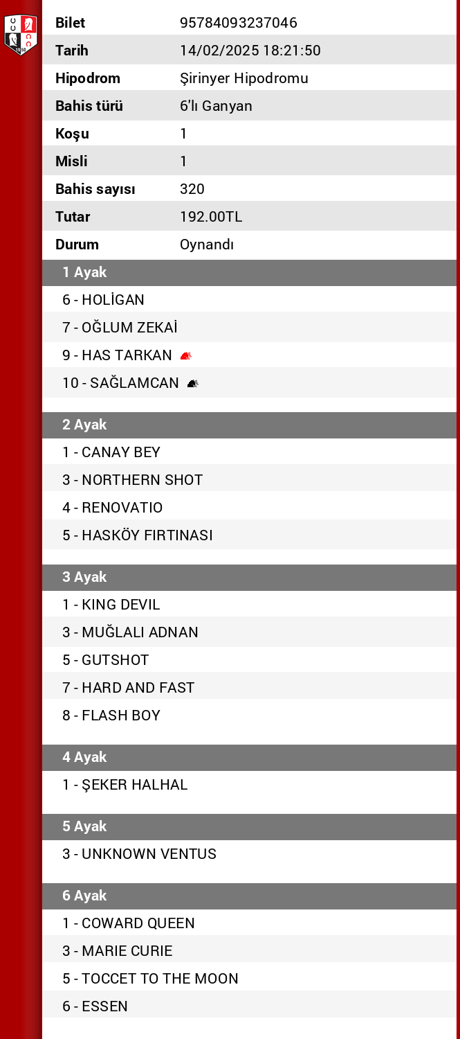Bilet no 83116797484989 Bahis türü 6’lı Ganyan