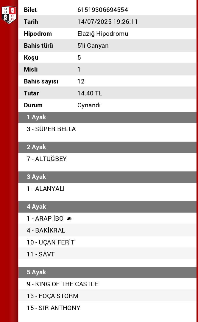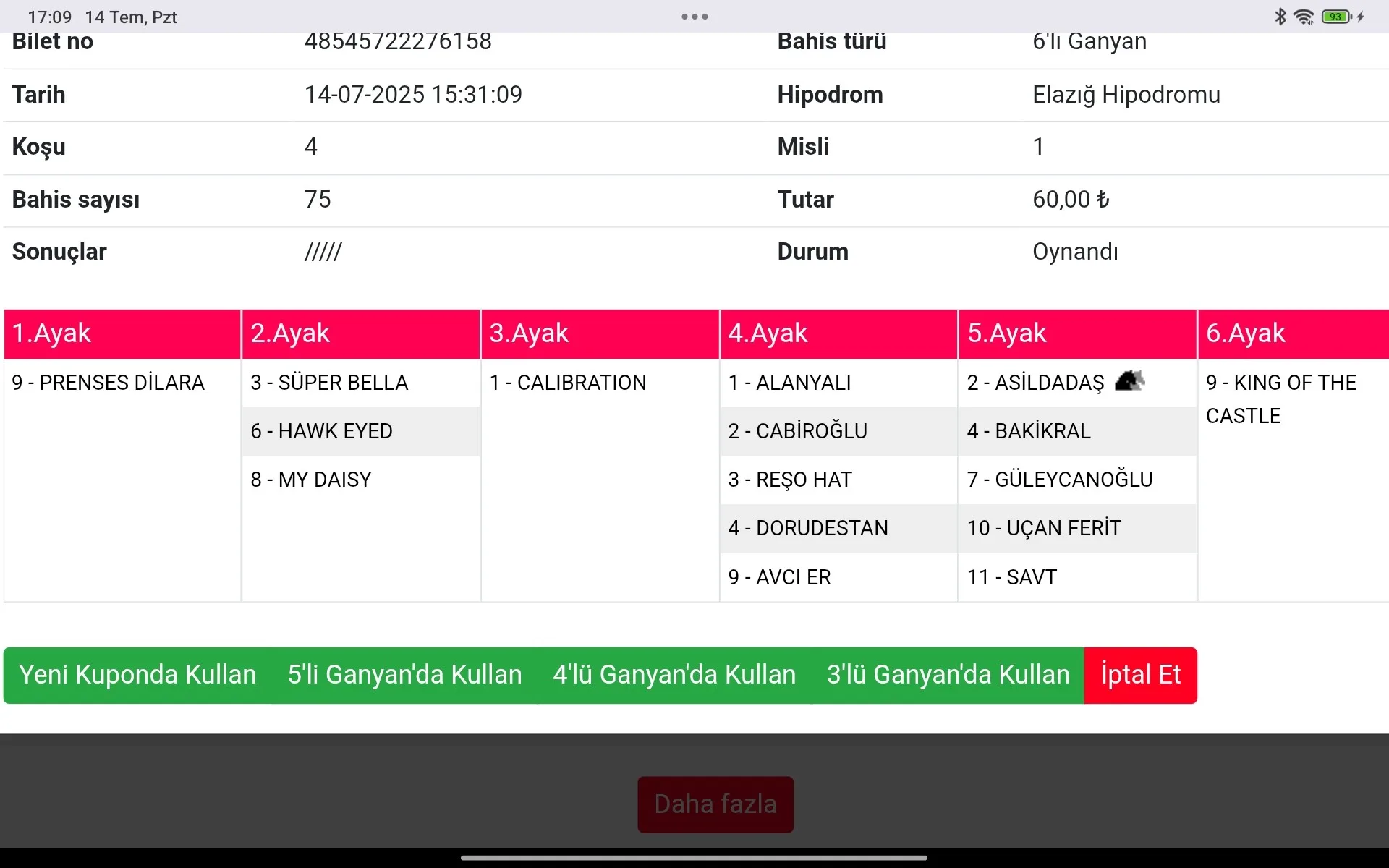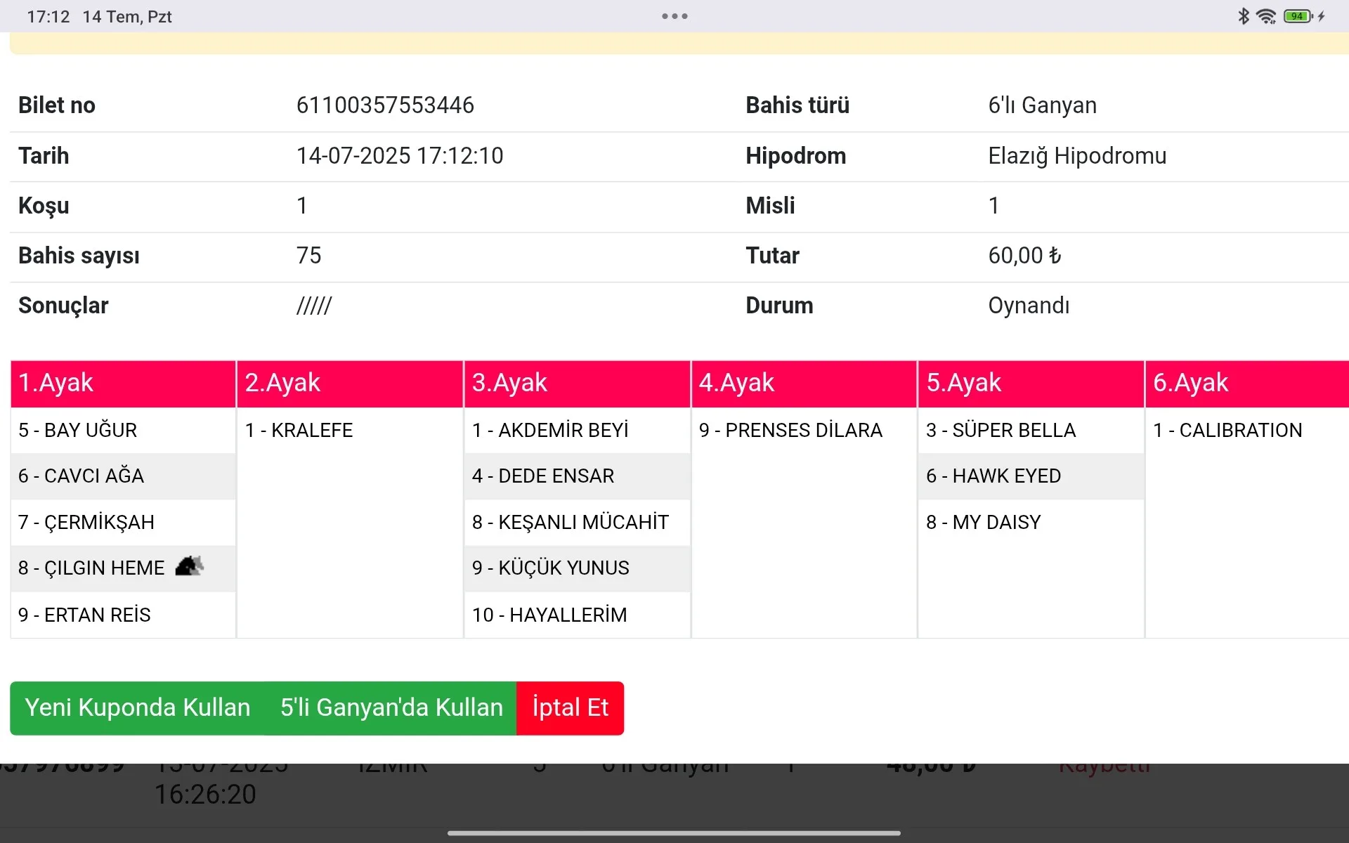 son ayak 6/10 ekle, 5.ayak 10 uçan ferit tek verildi ,alanyalı,cabiroğlu bitmiş yarış