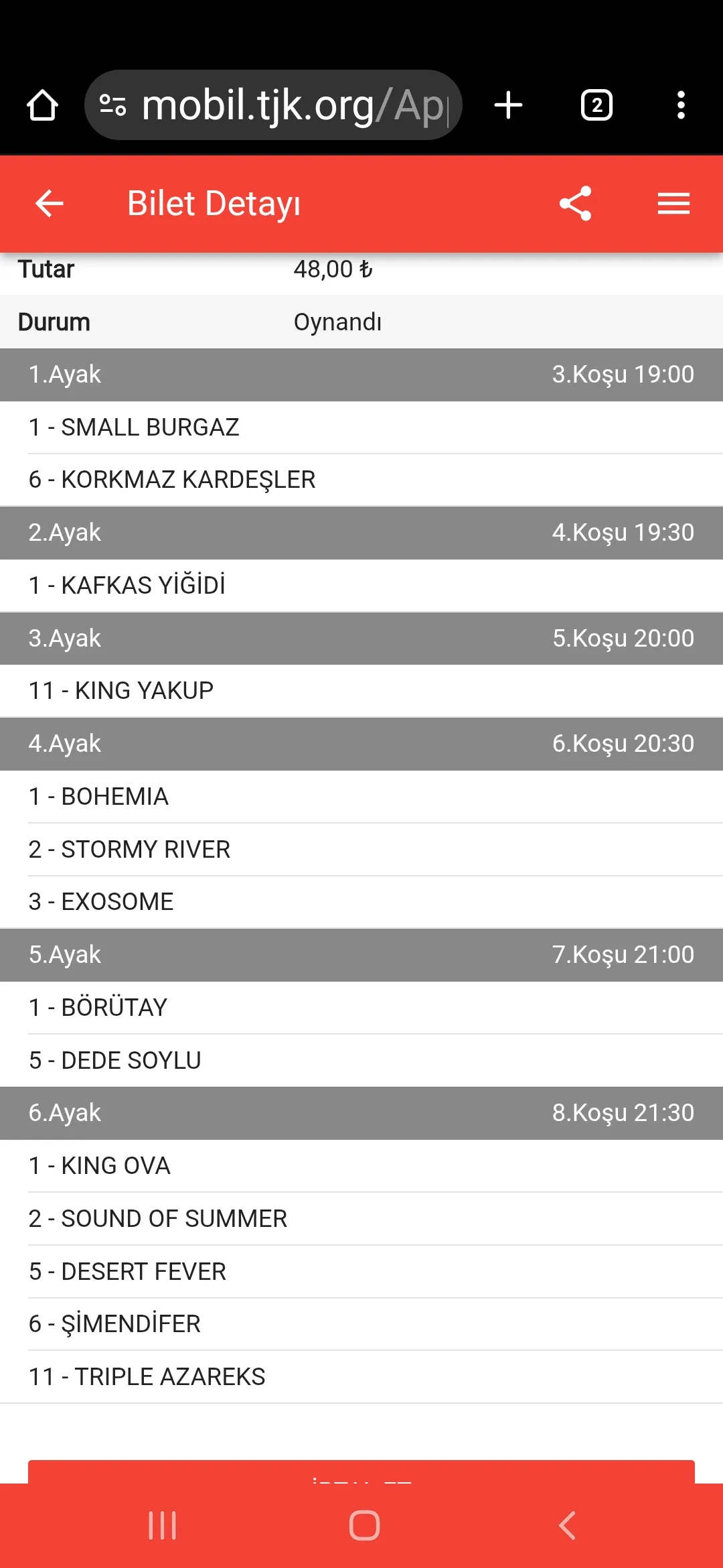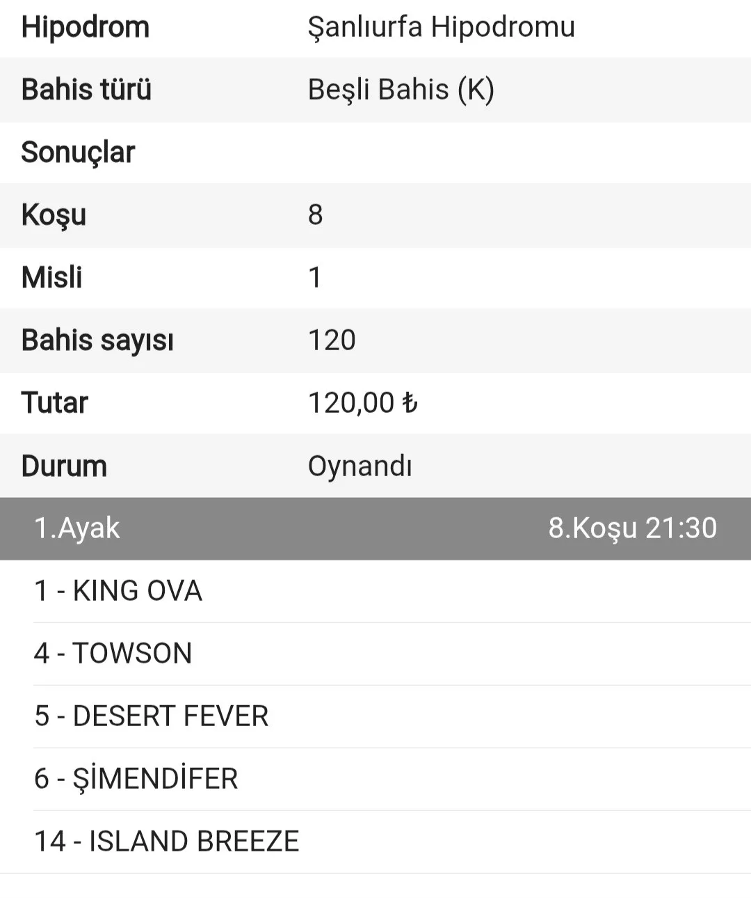 Sta reis son ayak 6 tek e kaldıysan sana bir kıyak yapayım diğer atlara ganyan alayım garantilensin senin iş 😁😁