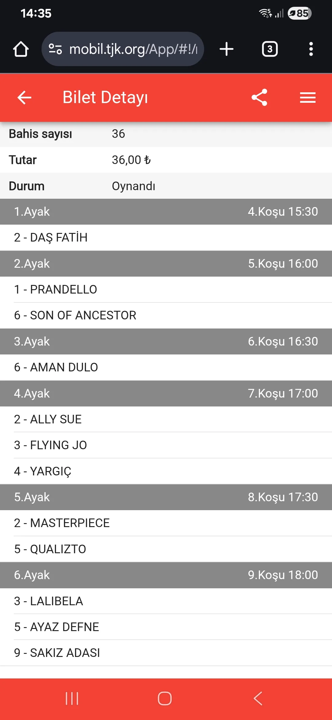 6.KOŞU: 2-GÖZPINARI favorim..6-AMAN DULO rakip…