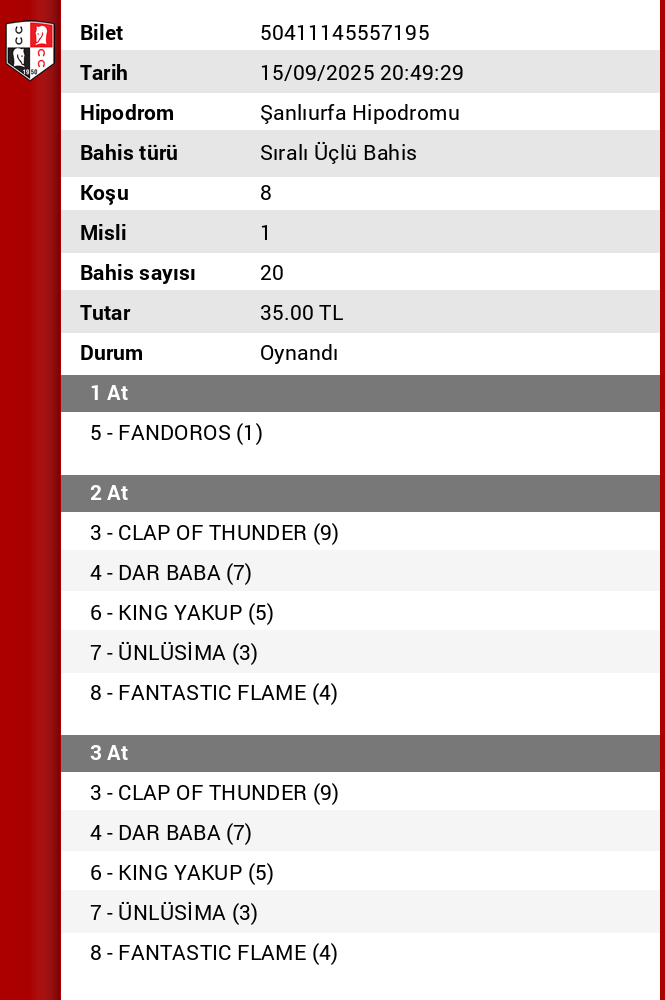 Evet farkettim, şasirdim hatta 6 at ile yazmamissiniz. Ama Yusuf Kaptan da tek, kutlarim👏👏👏 5’lide bol sanslar hocam 🙏