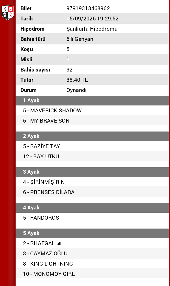 6.KOŞU: 4-KÜÇÜK BOZTEPE bir adım önde gördüğüm isim…6-ÇAĞLAYANŞELALE , 5-RAZİYE TAY ,10-KIZIL DORU , 2-TUĞKANTAY rakip isimler…Geniş kuponlarda HEPSİ …