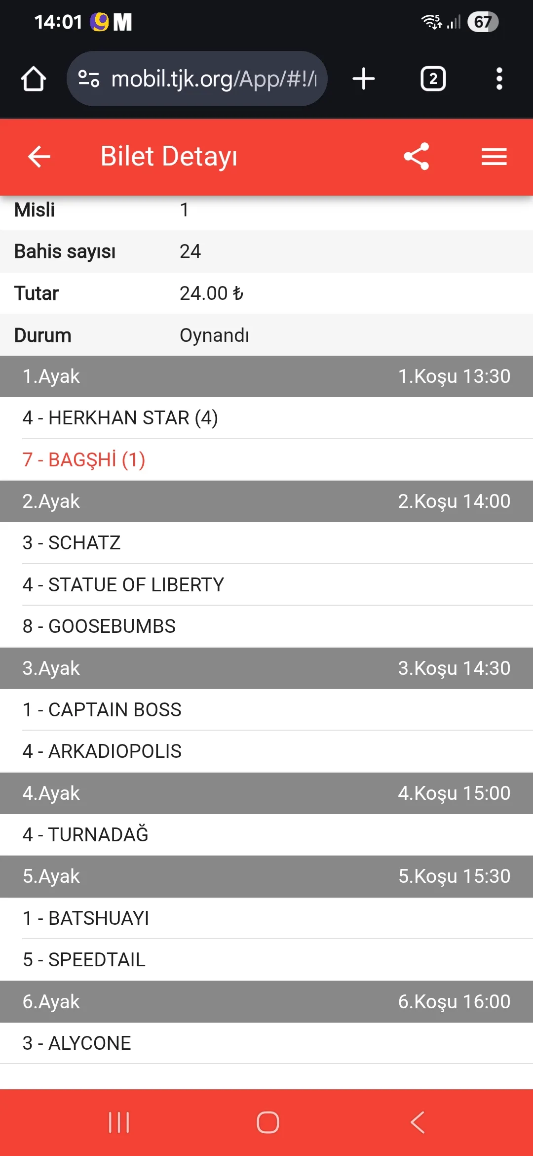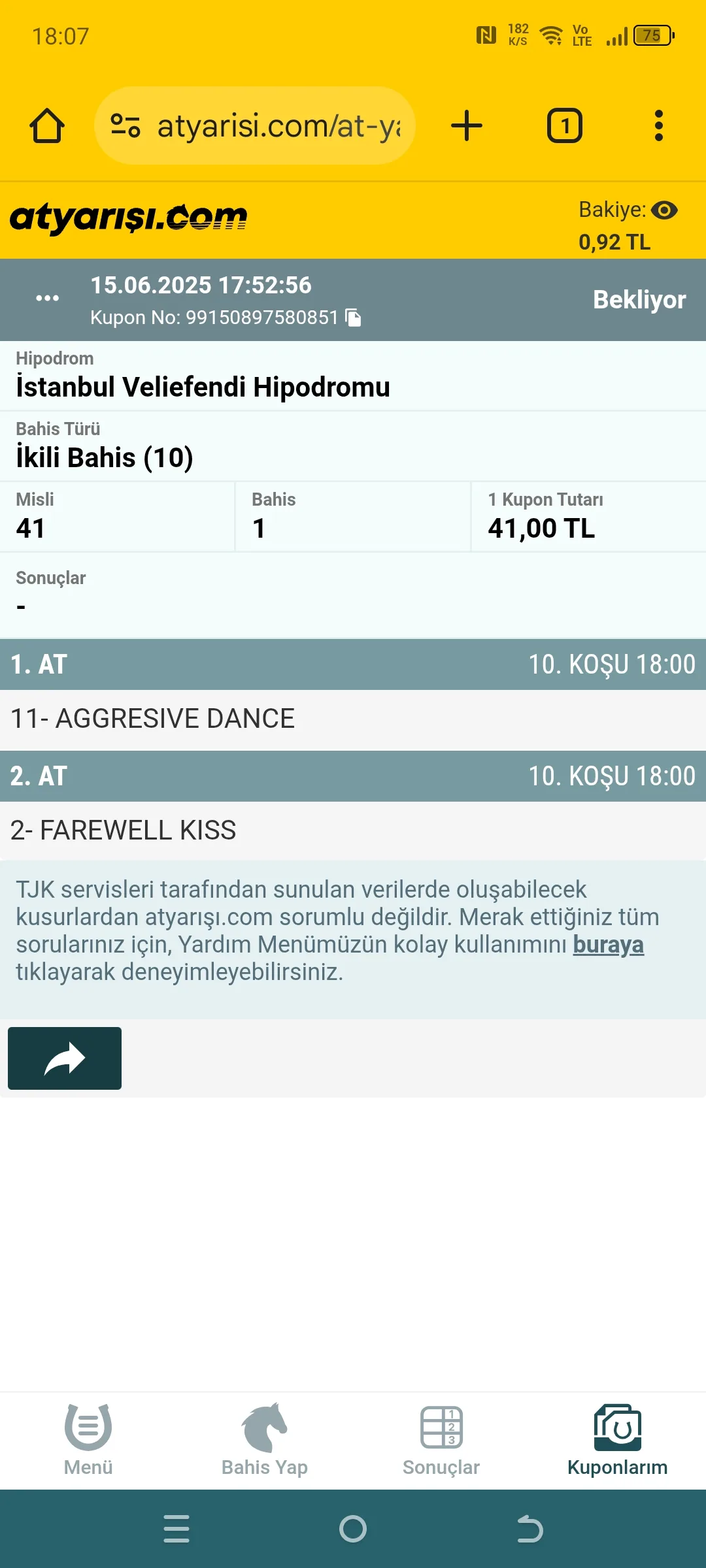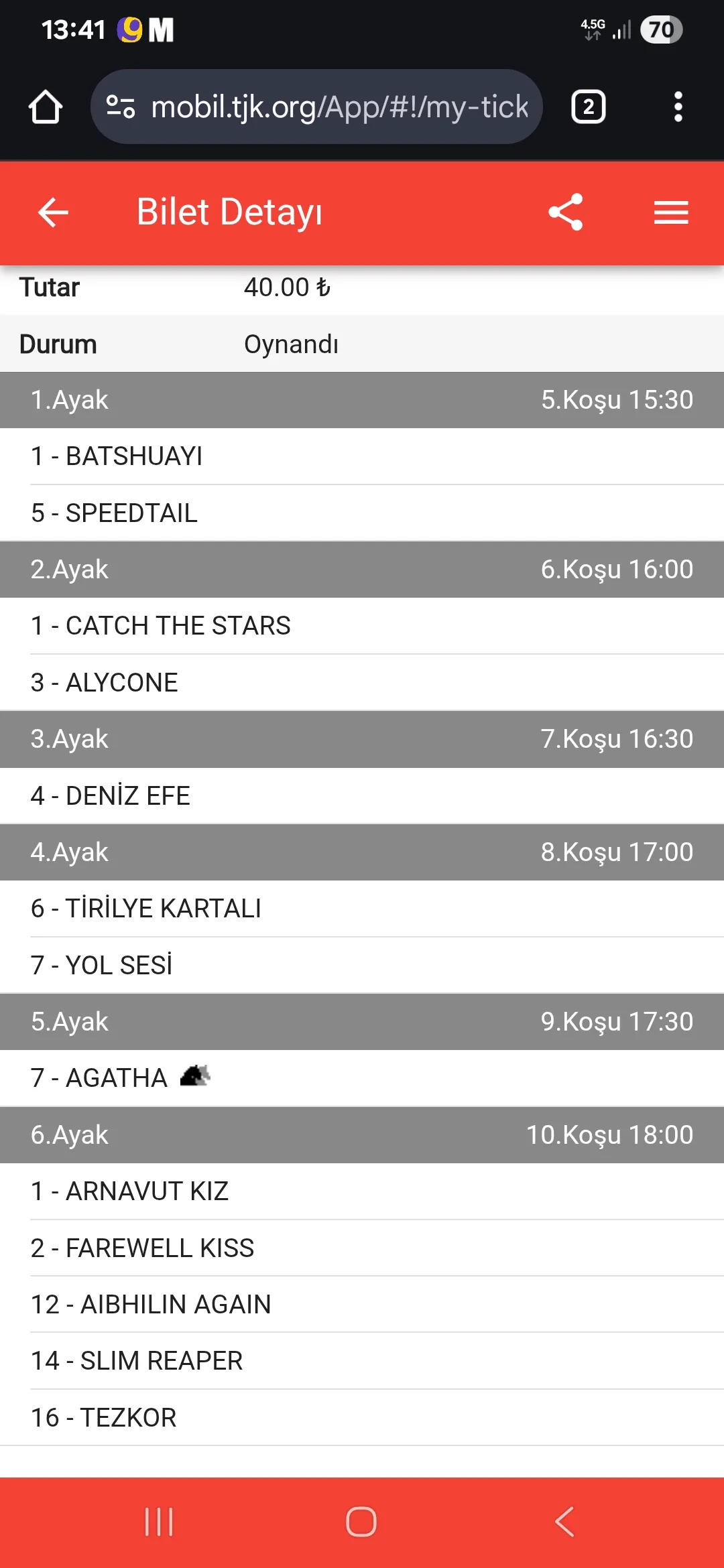 10.KOŞU :  1 ARNAVUT KIZ  2 FAREWELL KISS 13 TIZNOW GOLD 16 TEZKOR 14 SLIM REAPER dıkkat