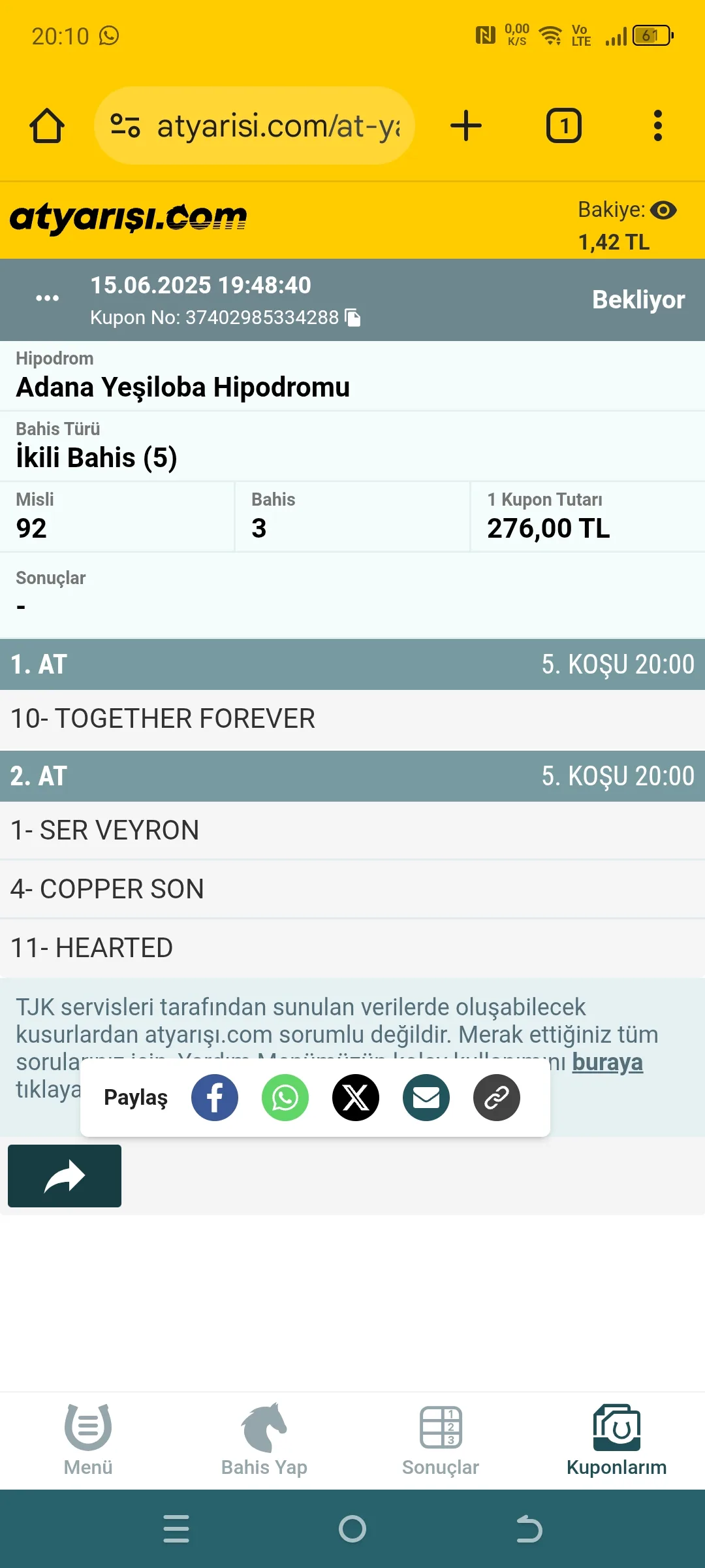 ADANA, 5’li Ganyan. Bol Şanslar…