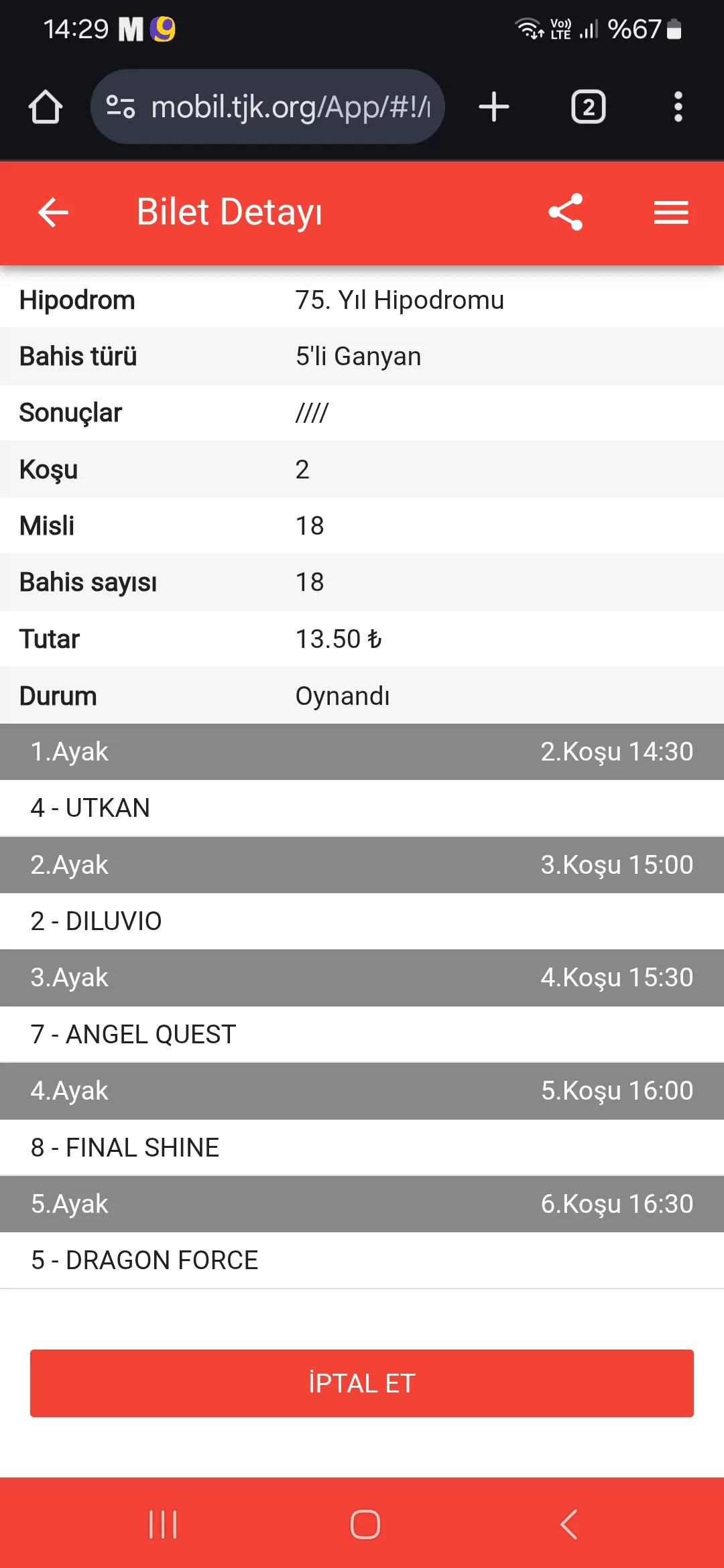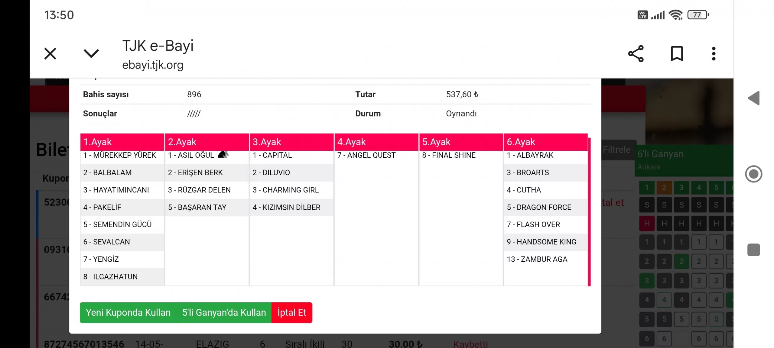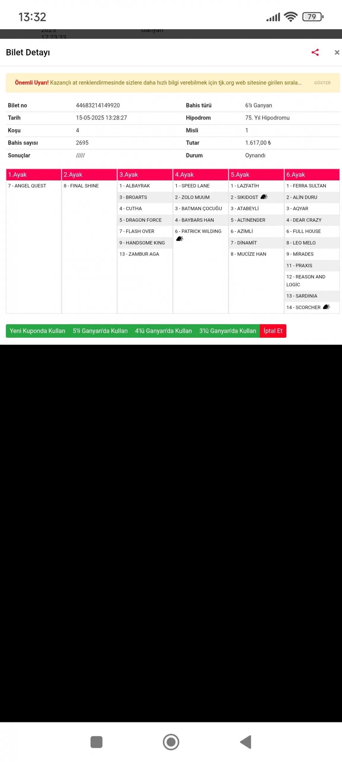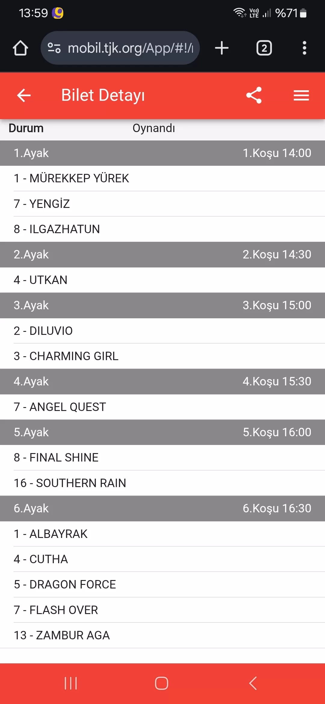 Bol şanslar Nihat ikinci ayak utkanı yazmasaymışsın ekürü var ya biri yarıştan çıkmış at eksiltmiş olurdun başka bir ayağa at yazardın yada
