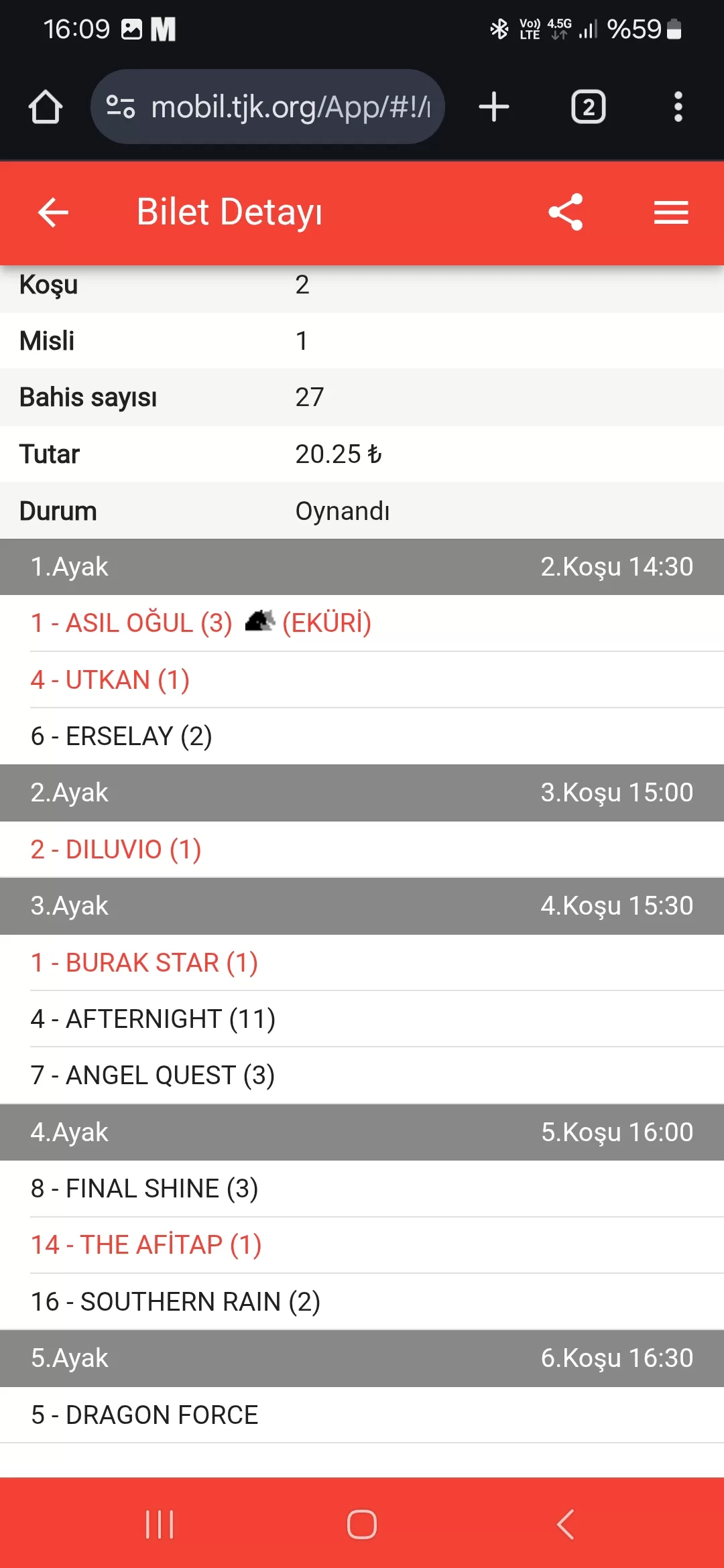 Vakti değil gibiydi de kazanan at gördüğü koşuda sıfır çekti ondan eledim. Yattık maalesef.