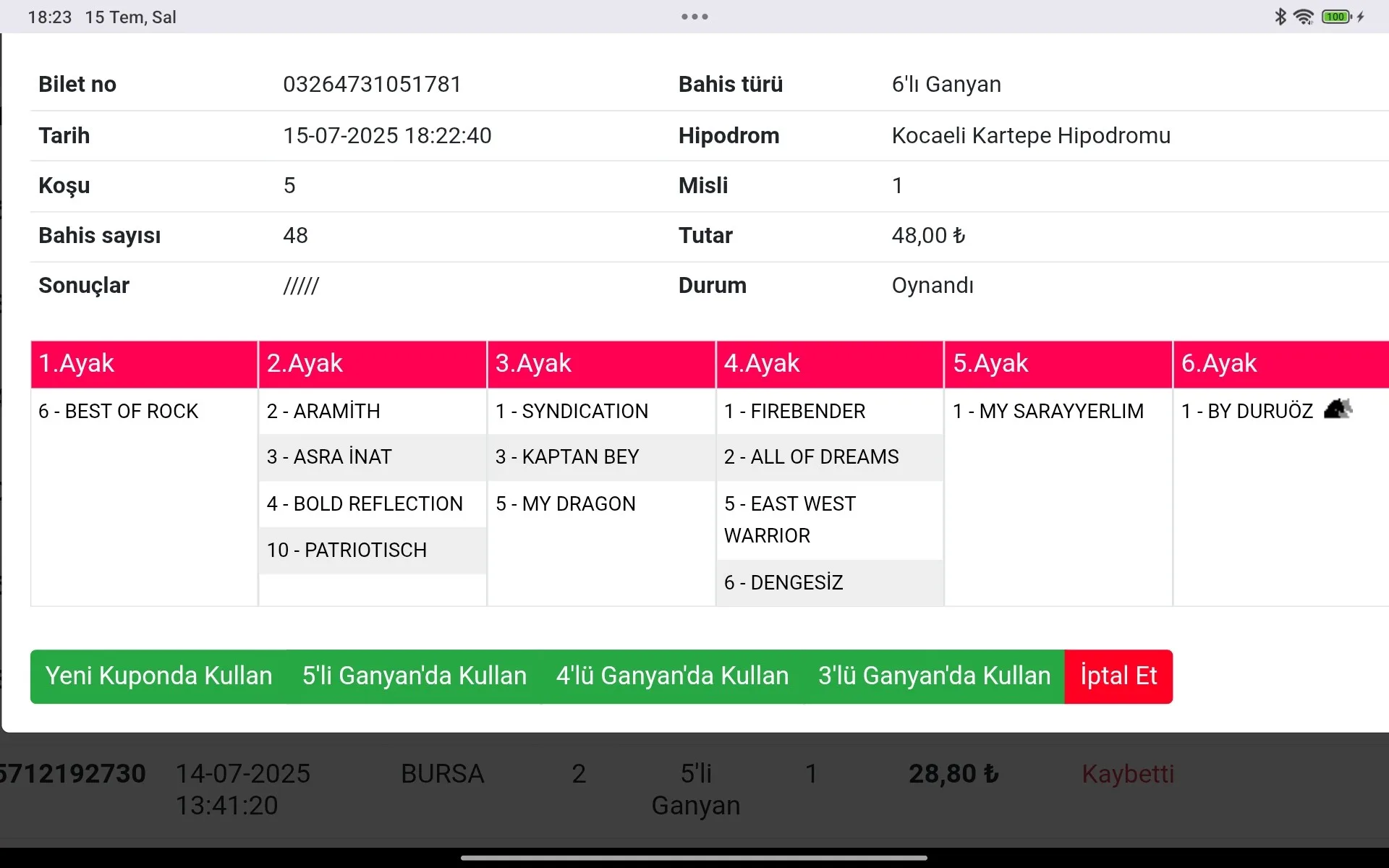 15 TEMMUZ 2025 SALI KOCAELİ ALTILI GANYAN TAHMİNLERİ (BUCA 06)
