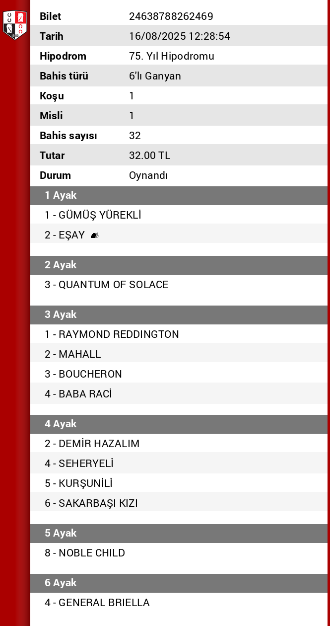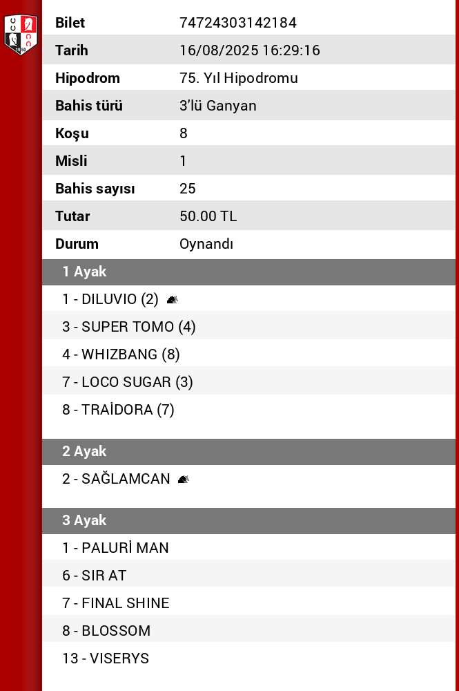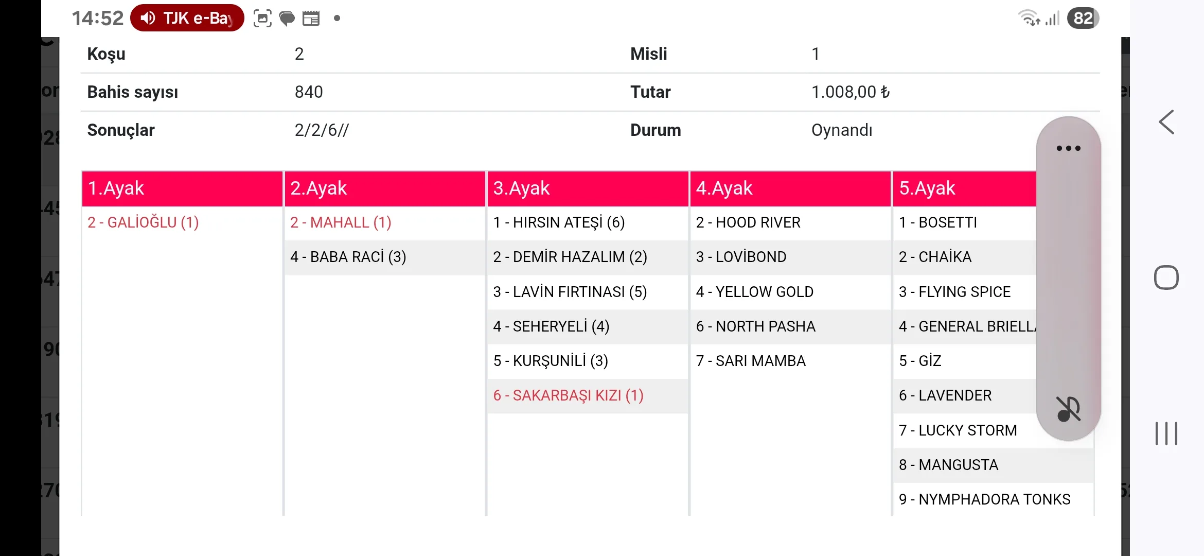 rıca ederım ekurılerın kazanması normal olurdu zaten artık gerısı kısmetıne kalmıs :D gecen 6 7 bınlıralık 5lı de son ayak 11 at vardı 8 nı yazdık yattık oluyor bazen sonu guzel olsun ıyı para versın bolşans :)