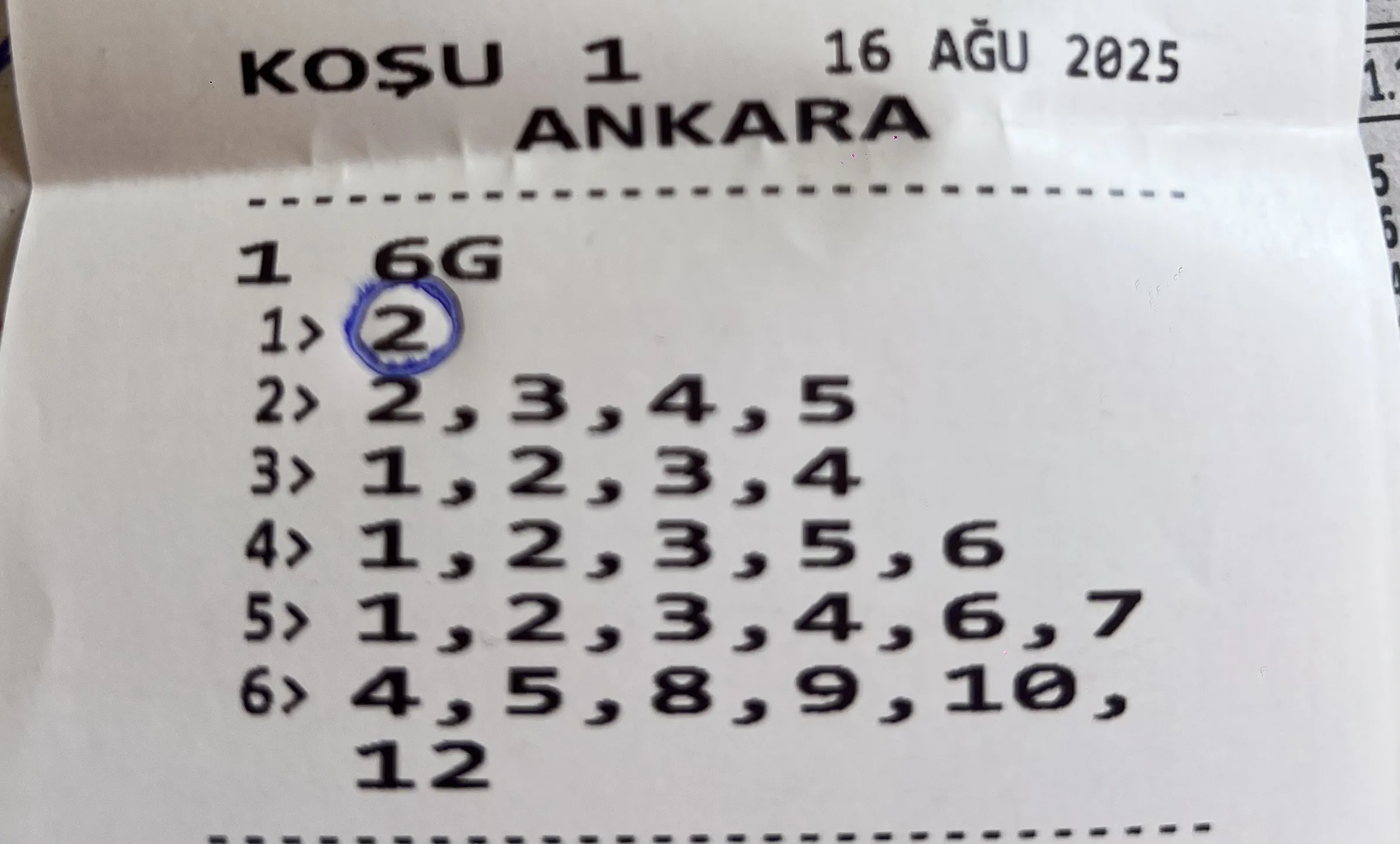 6.KOŞU : GAZİ den sonra ki en zor yarış ne desem boş kalır  14 at var 13 tanesini yazsak kalan 1 safkan gelir illa bir at söyle deseniz söyleyemiyorum aklım diğerinimi söyleseydim diyor bolşans olsun gönlünüzden kim geçiyorsa onu yazın HEPSİ