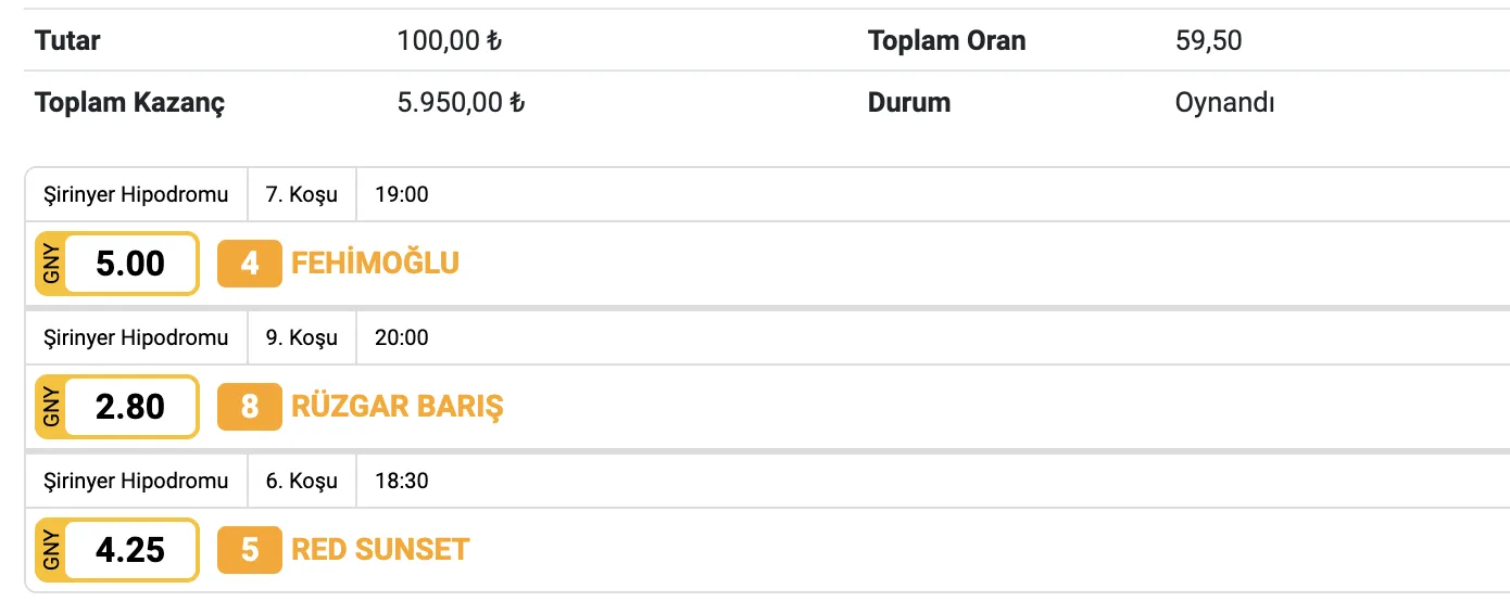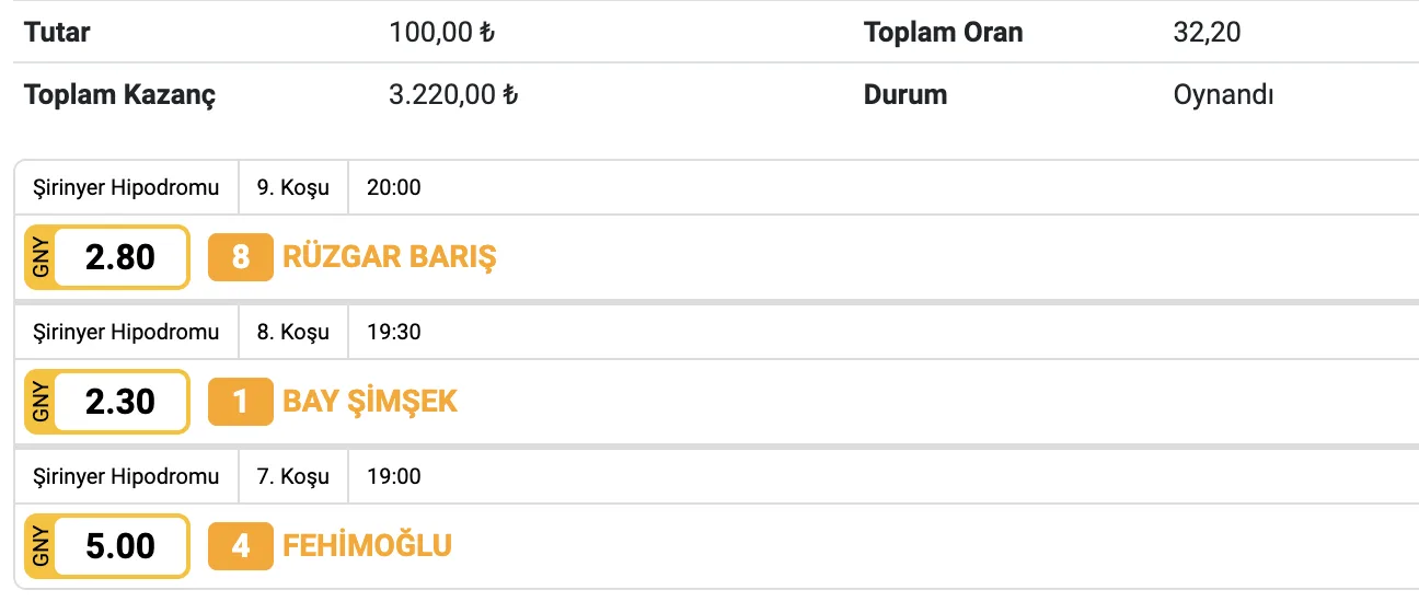 2. 5’li Ganyan. Bol Şanslar…