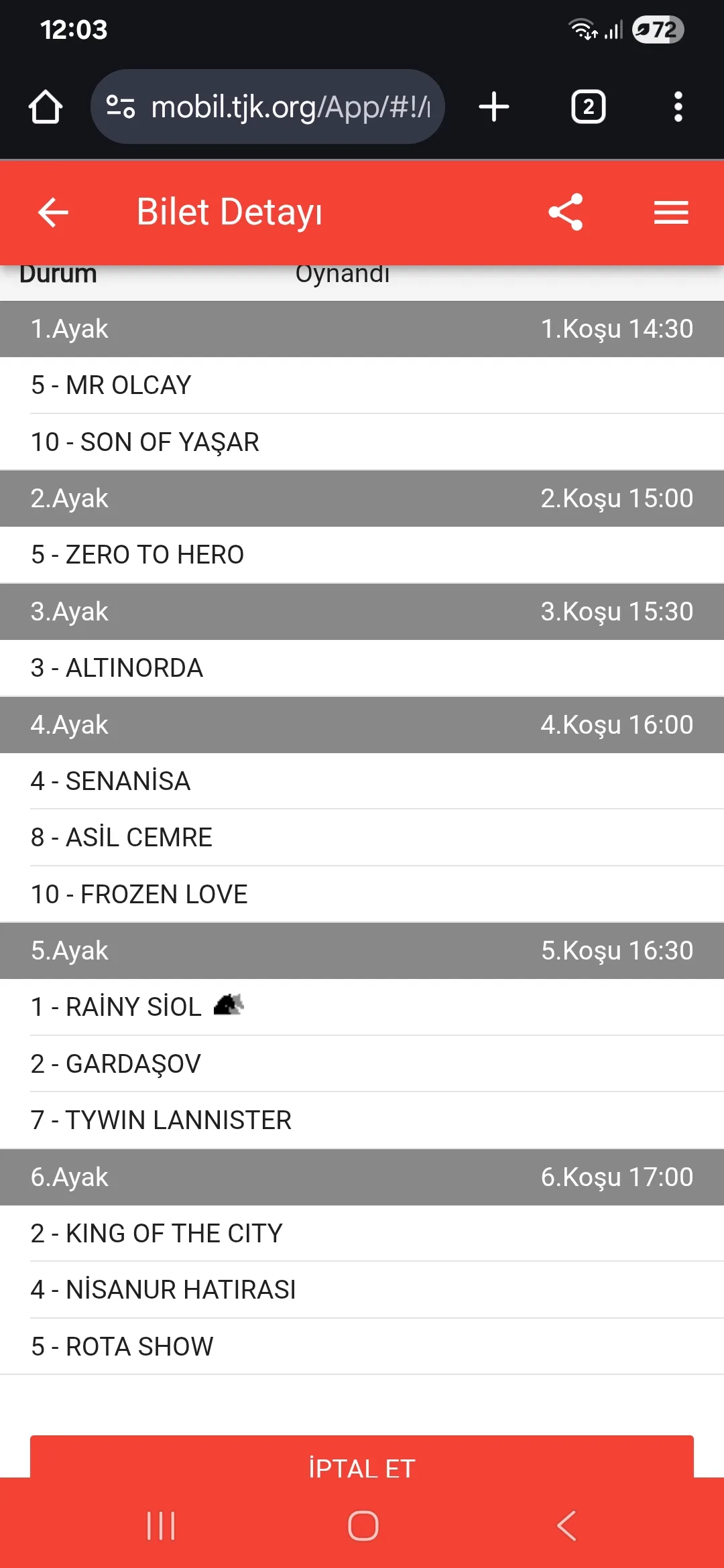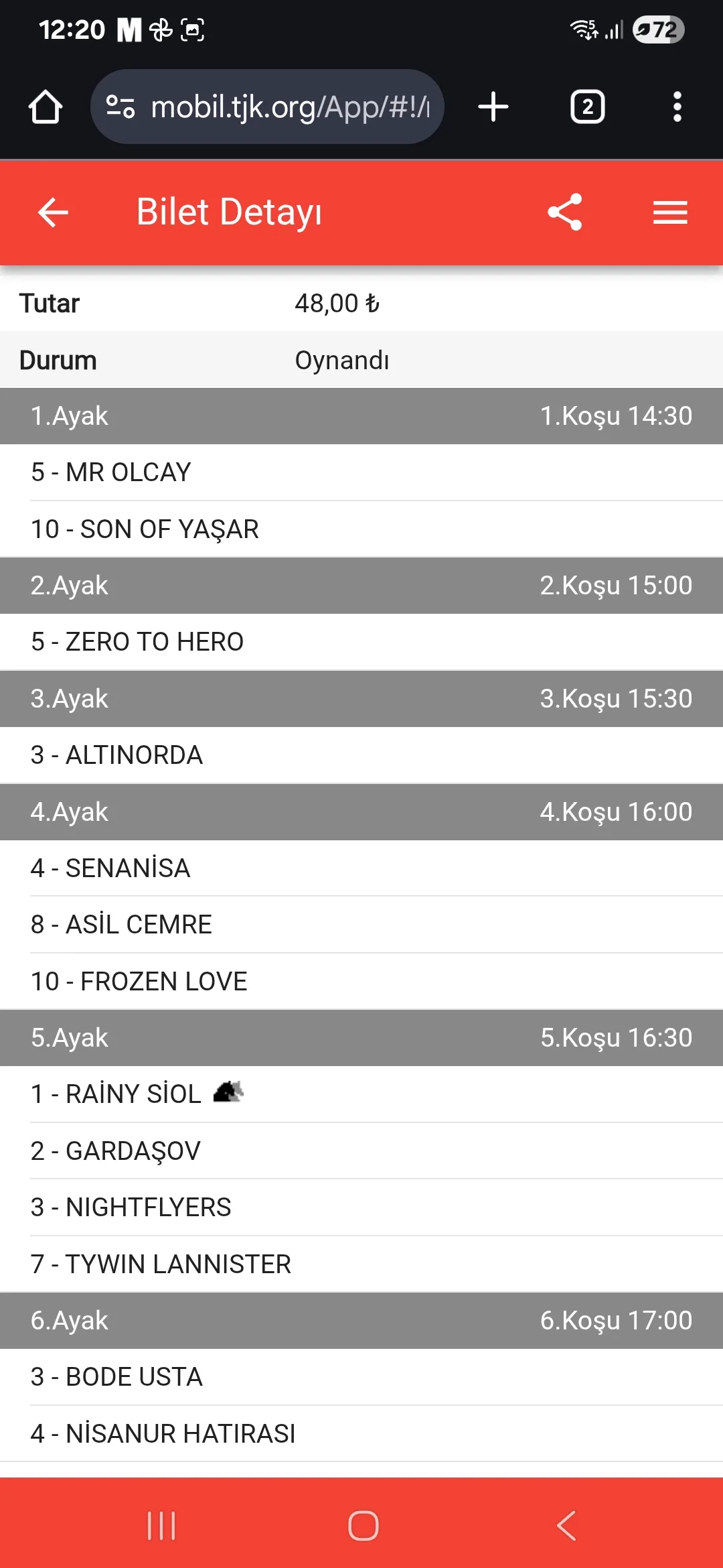 2.KOŞU: Kalibre olarak buradaki rakiplerinden bir tık üstte gördüğüm 1-MÖSYÖ GÖKSU startta takılmazsa bu grupta öncelikli isim olur..Uygun kilo ile koşacak olan 5-ZERO TO HERO ve ikide iki yaparak gelen 2-BEST OF ANADOLU rakip safkanlar..Beş atın start aldığı koşuda kalan iki safkanı da yazıp kapatabiliriz de..