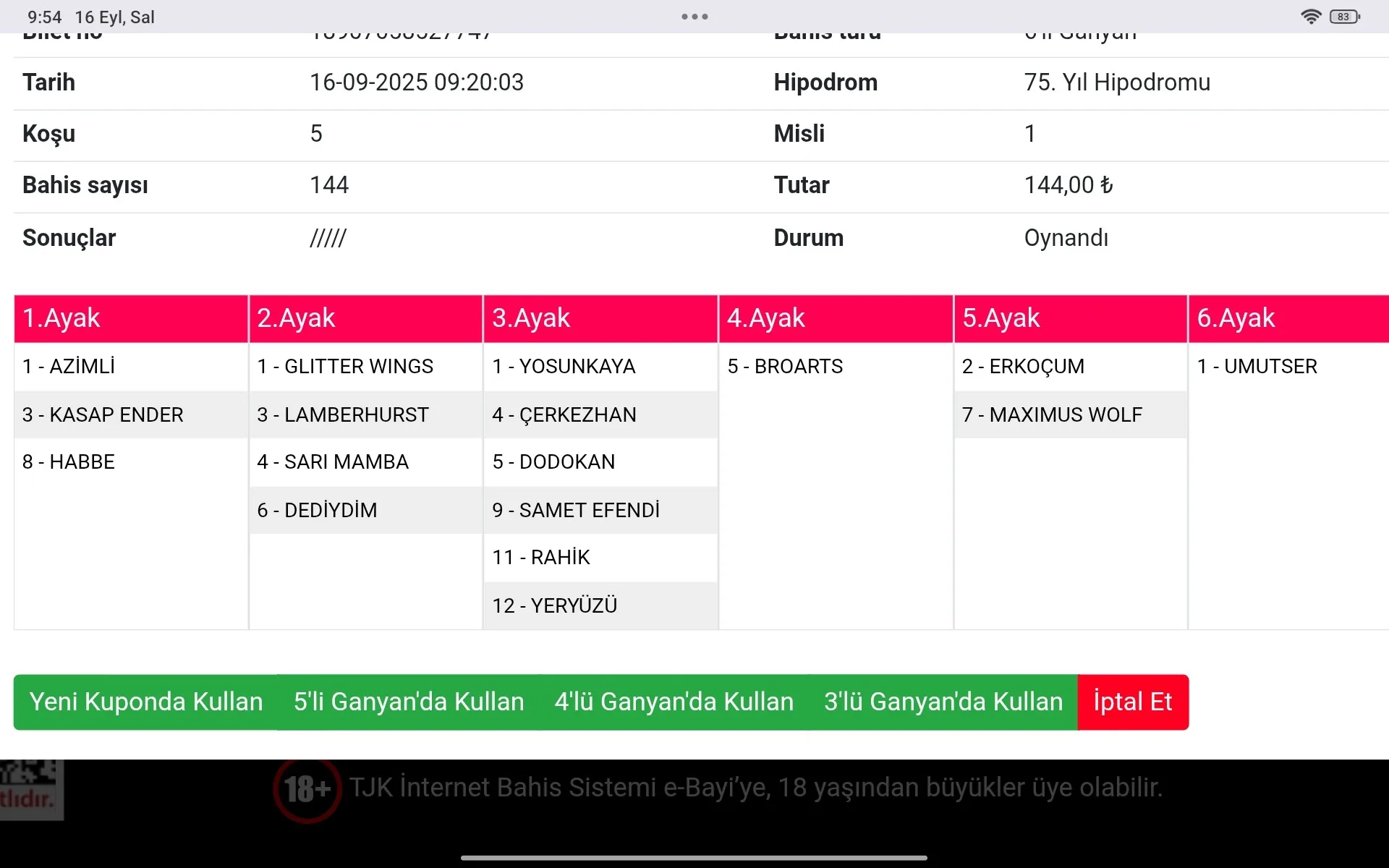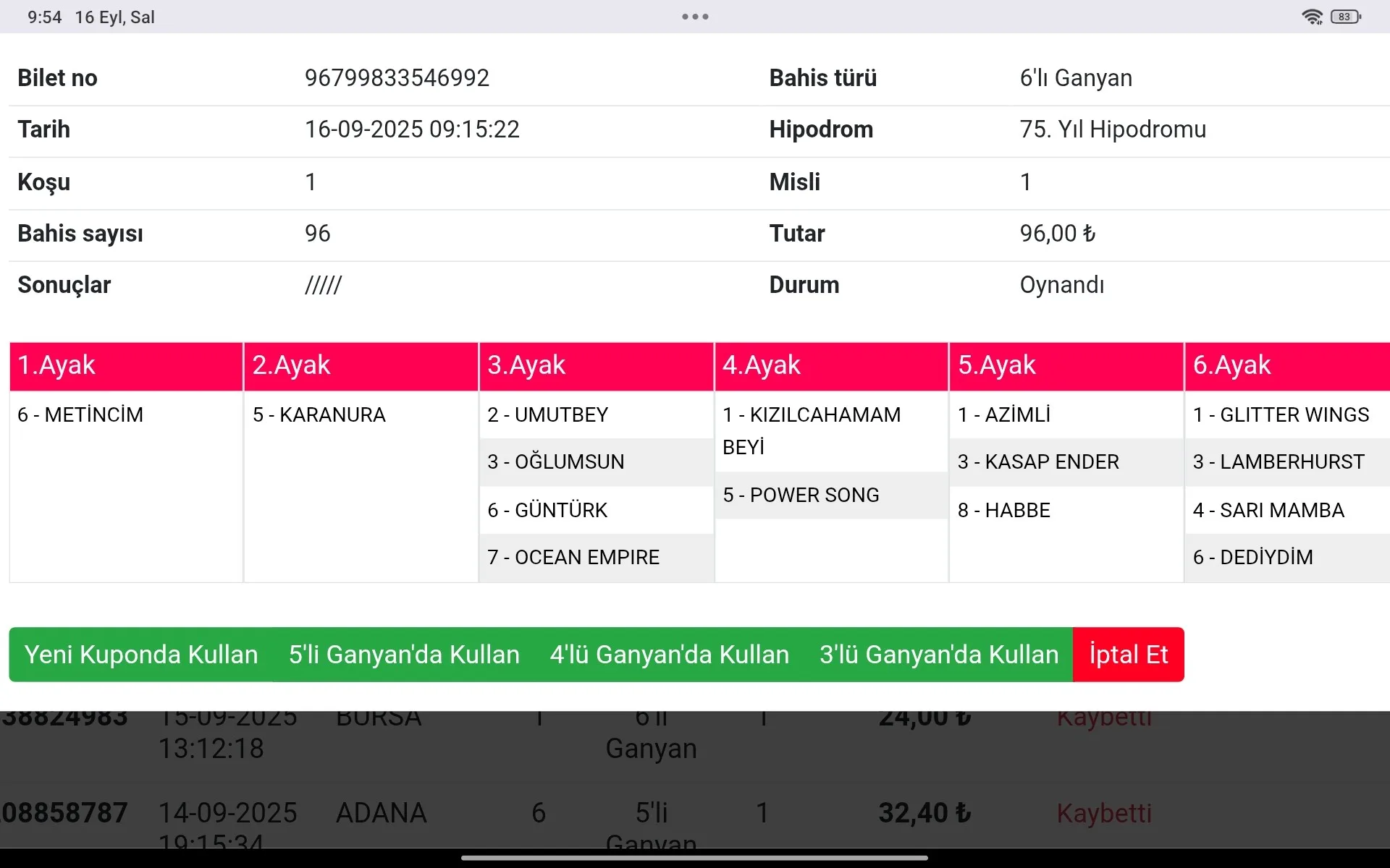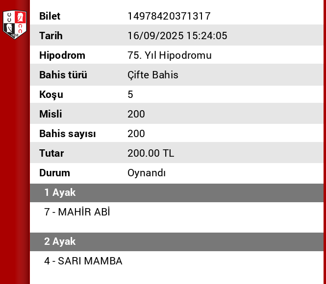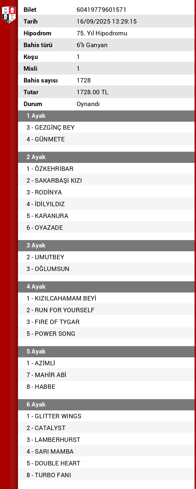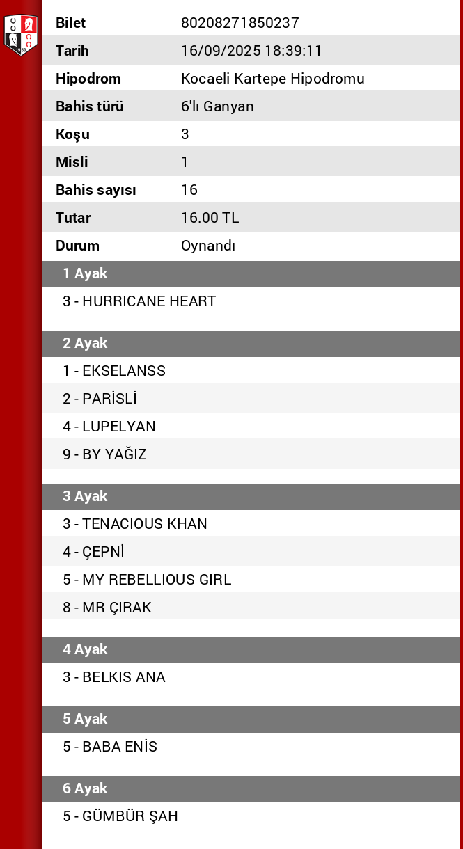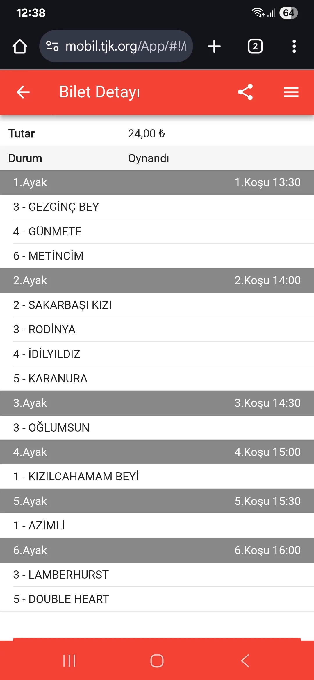 TJK Bilet Detayı