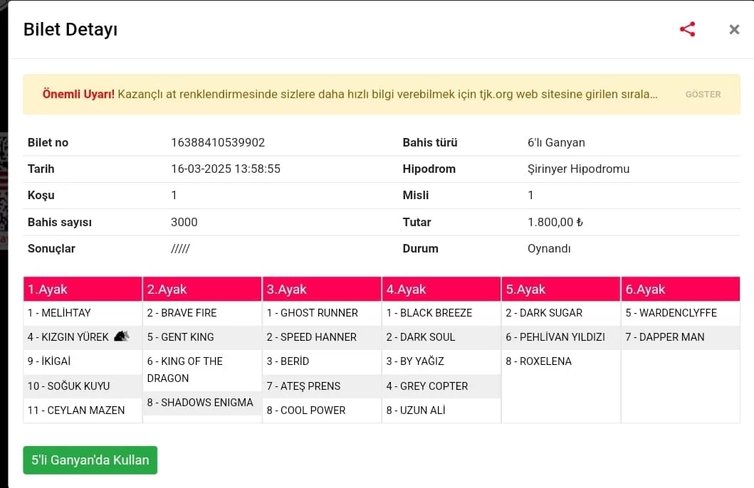 5.AYAK: 3 ATEŞ BAHAR için grup uygun gözüküyor, bir aksilik olmazsa kazanır.