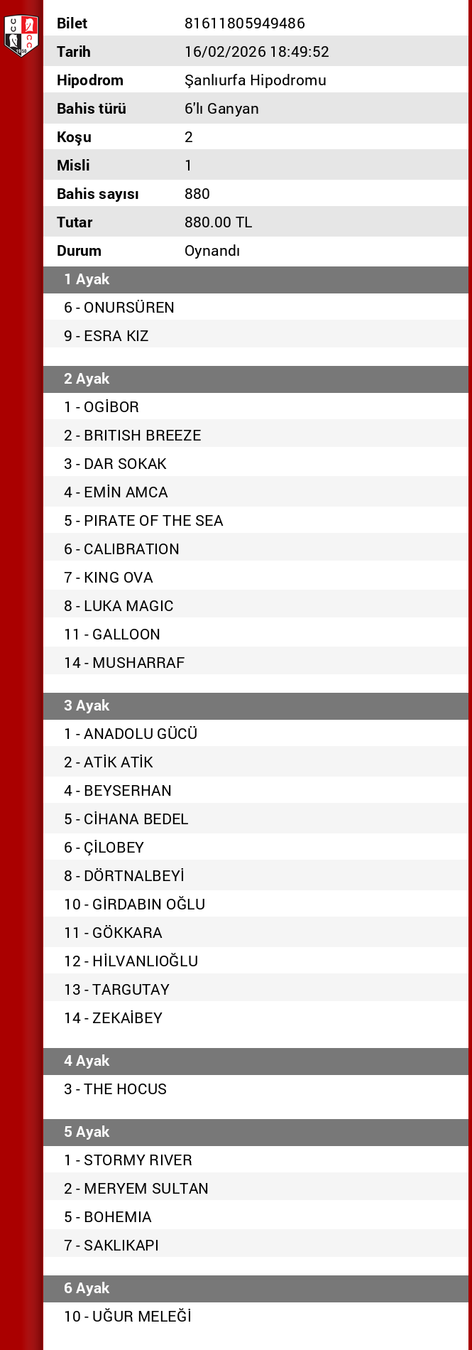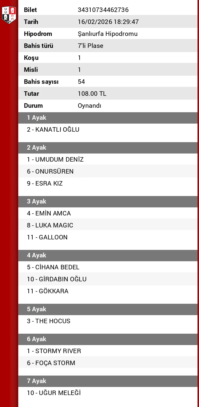 TJK Bilet Detayı
