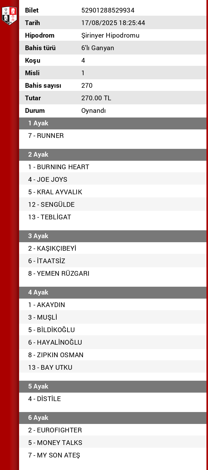 2’den kopamadım 7-2 girerdim en fazla. 17 bin lira vermiş, seçtim bıraktım atı :(