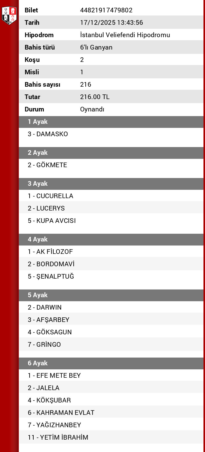 1.AYAK : 3 DAMASKO son yarış iyiydi bu defa da kazanabilir şansı çok yüksek 8 LORD OF THE WOLF 4 ARKADIOPOLIS dikkat edilmesi gereken bir diğer safkanlar son olarak 9 CRAZY BLOOD
