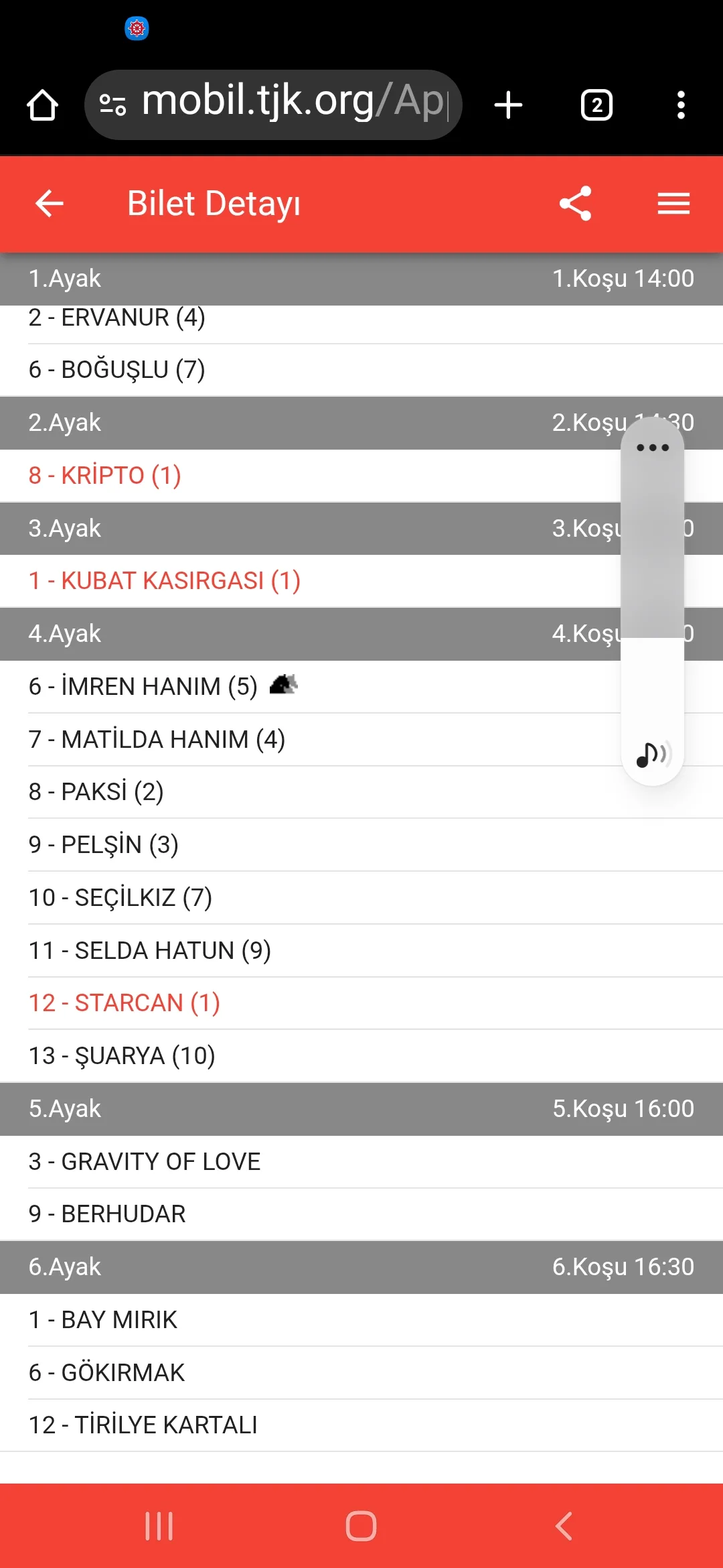 TJK Bilet Detayı