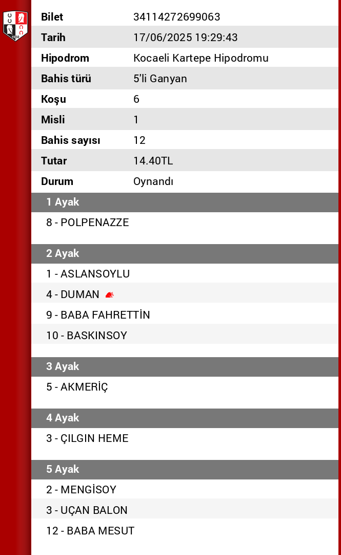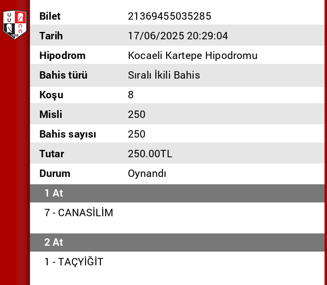 2.KOŞU : 1 ÇELİK TOYNAK alternatif banko 4 İRFAN ABİ 3 HEMŞİN 2 DEMİRTOKUŞ sıralama olur gibi geniş kuponlara
