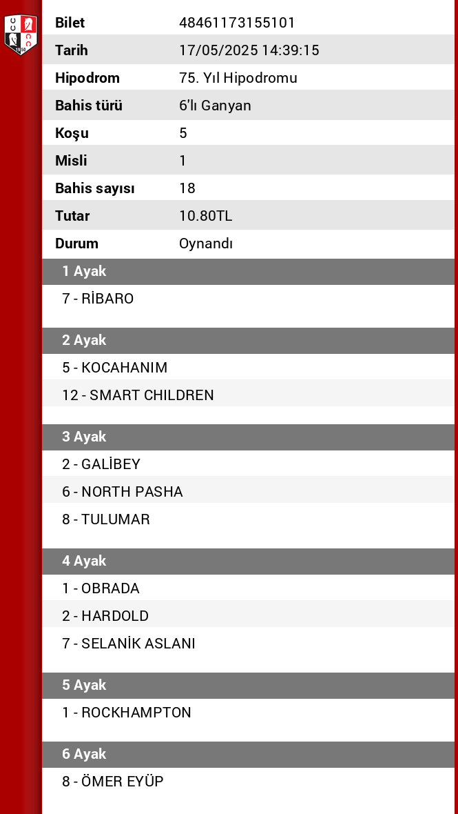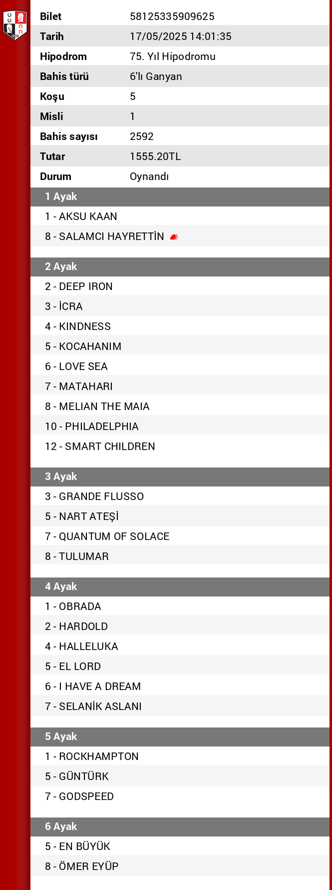 TJK Bilet Detayı