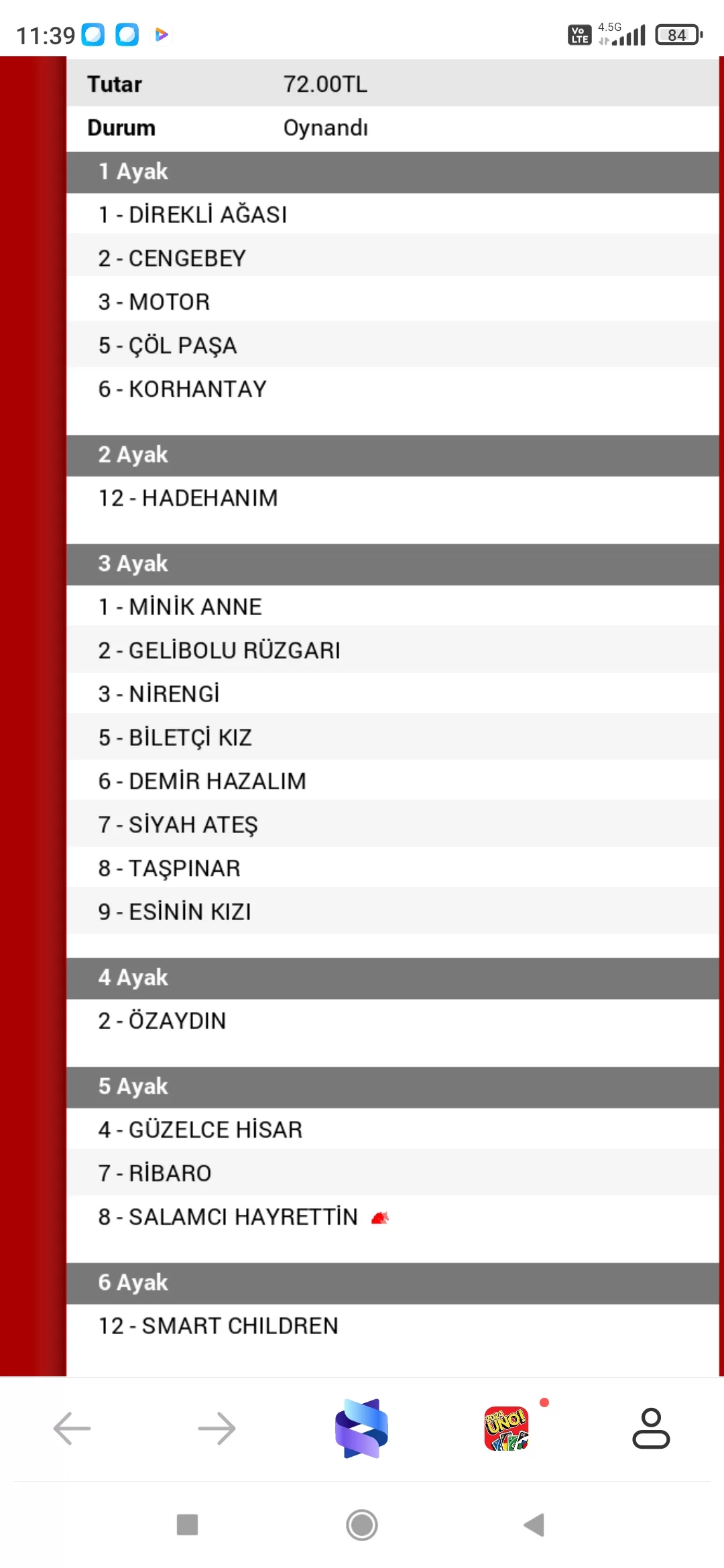 SALAMCI HAYRETTİN (ilk yarışında sinyale düşmüştü bu at fena yarışları yok sinyalin hakkını bugün verebilir)