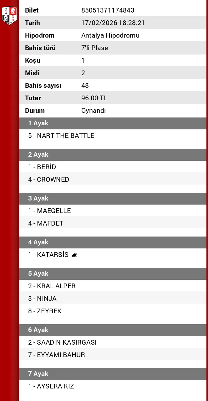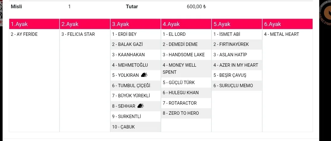 ikinci bir tekim olmayınca 5. ayakta favorimi yalnız bıraktım