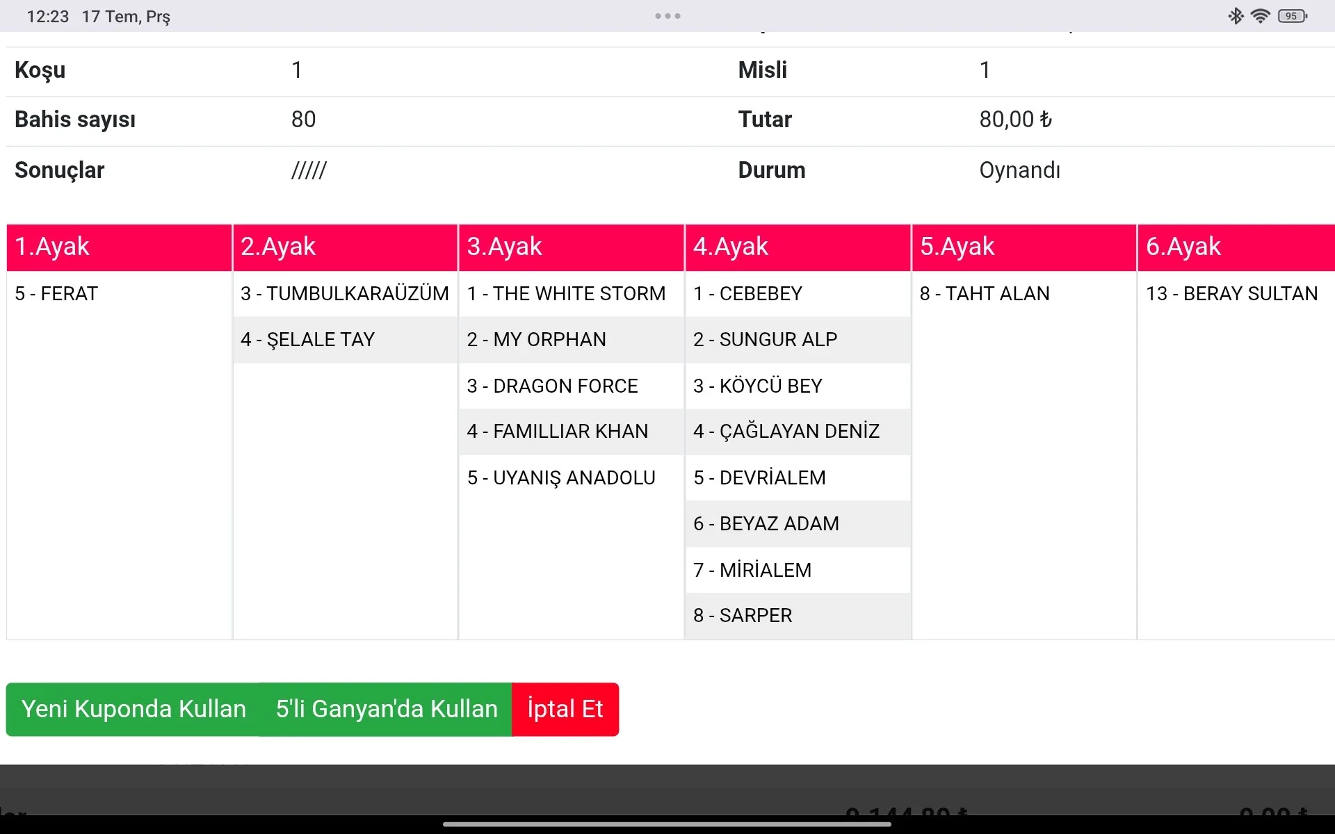 6.AYAK: 5 MAJESTIC HOLIDAY ve 4 TROUBLE BOY ön planda gözükse de zor koşu. Hepsi geçiyorum.