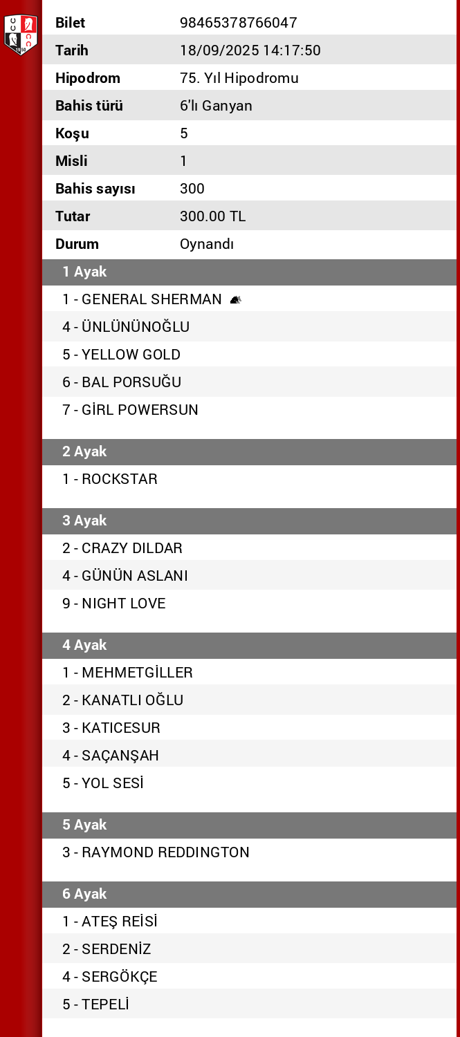TJK Bilet Detayı