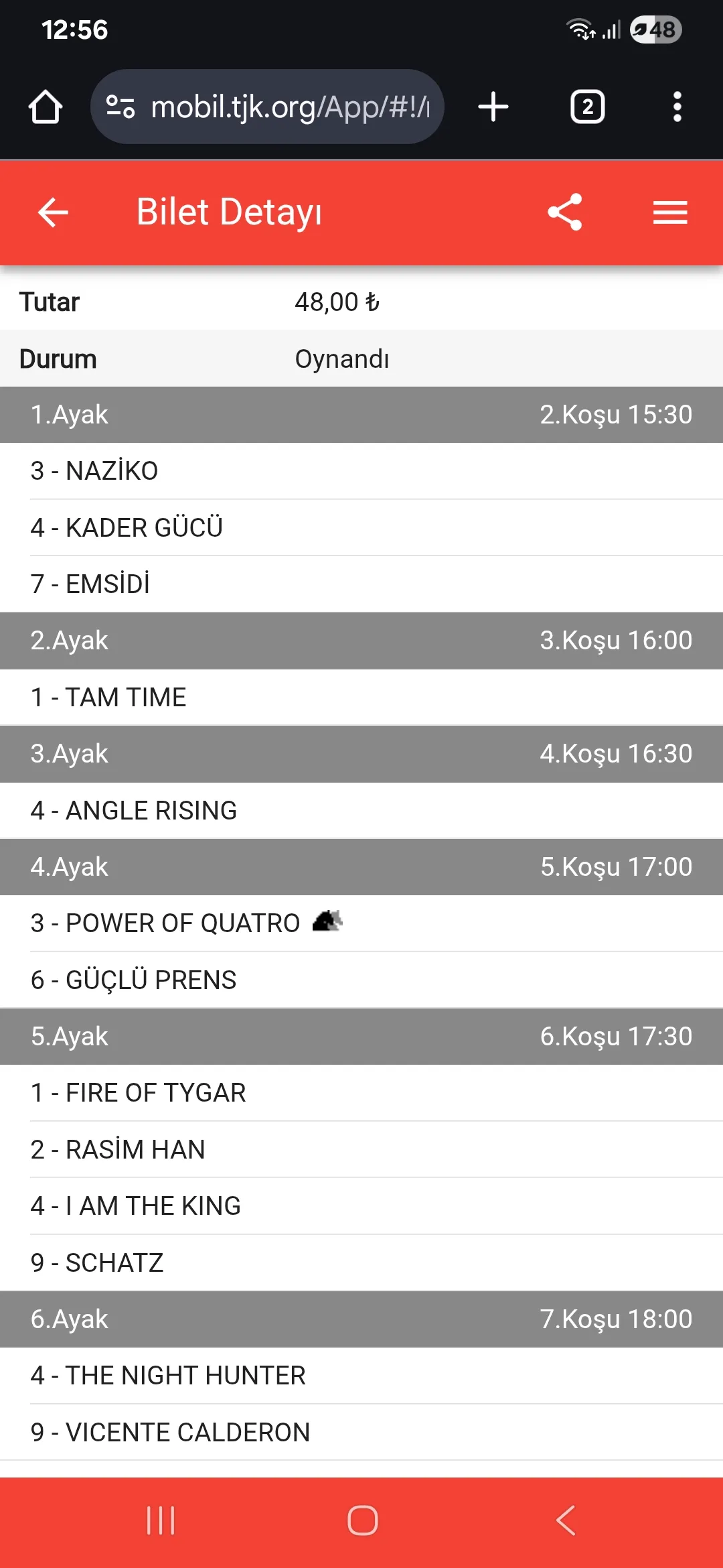 TJK Bilet Detayı