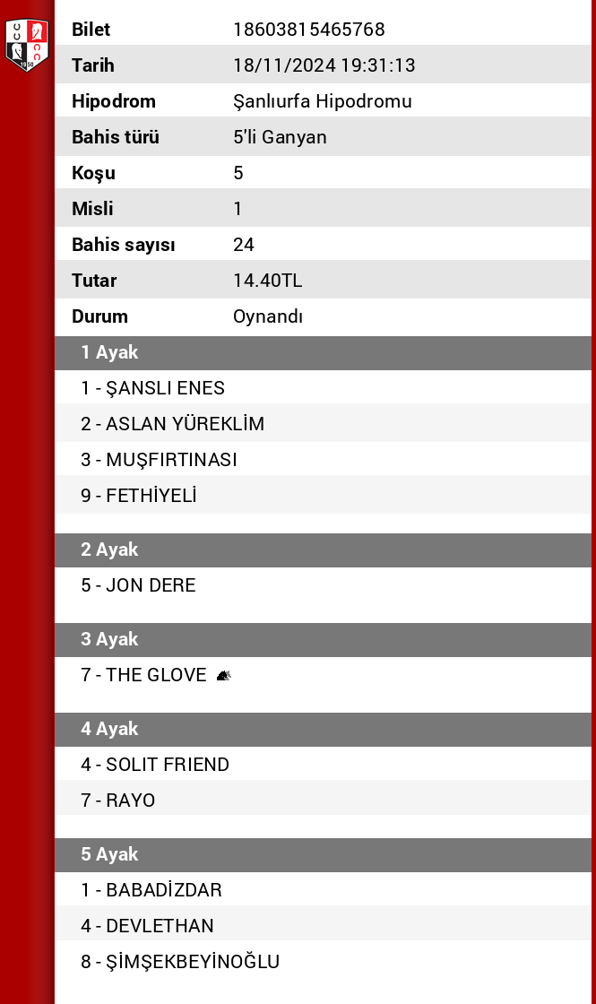 5.koşu= 3 MUŞ FIRTINASI 4 ALINCAHAN ilk iki isim. 7 KRAL DOĞAN 9 FETHİYELİ rakip