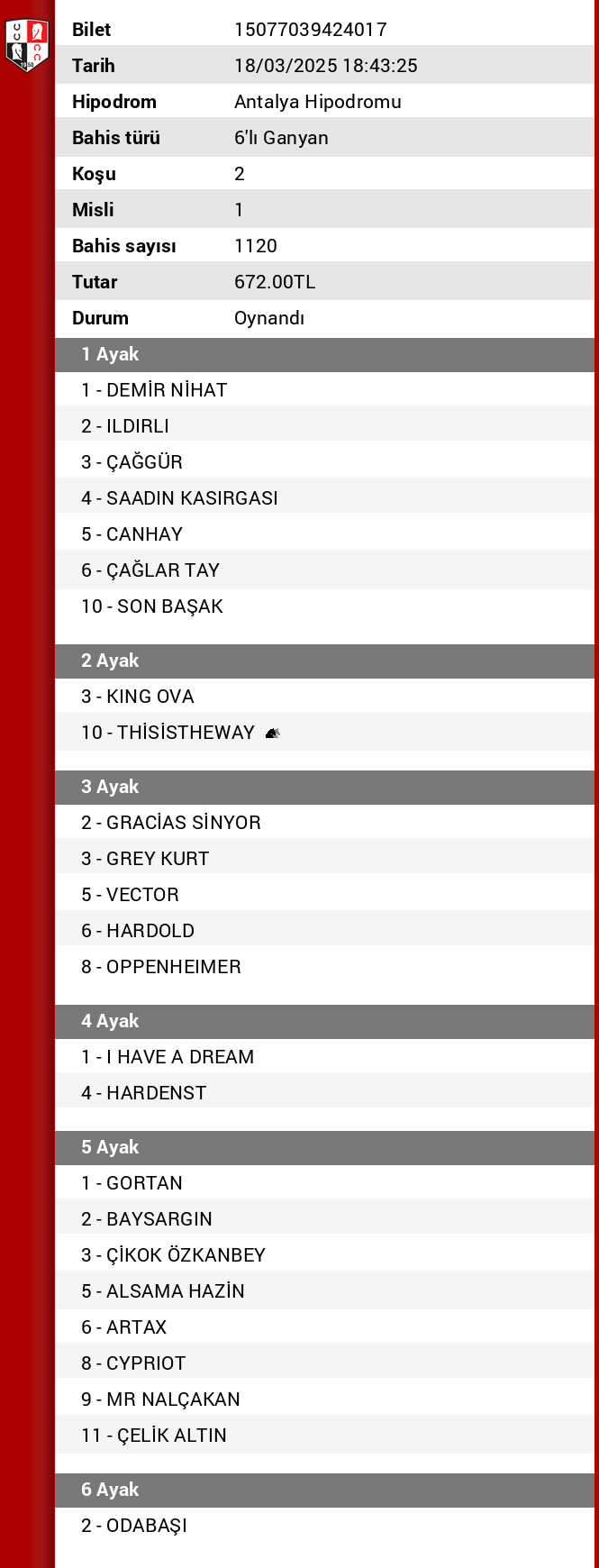 Herkese selamlar ve bol şanslar diliyorum. 7 koşulu Antalya programında bugün toplam 3 yarışta at binecek olan Özcan YILDIRIM‘ın 3 de 3 yaparak günün jokeyi olabileceğini hatırlatmak isterim.