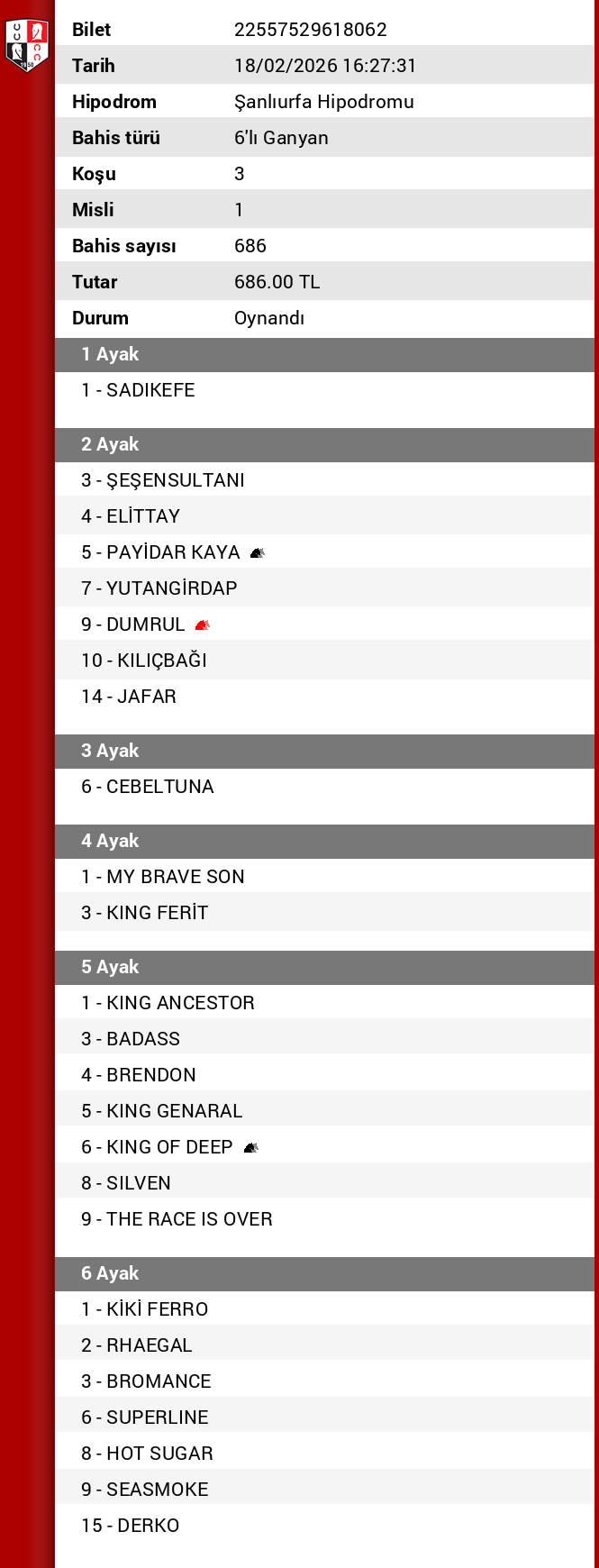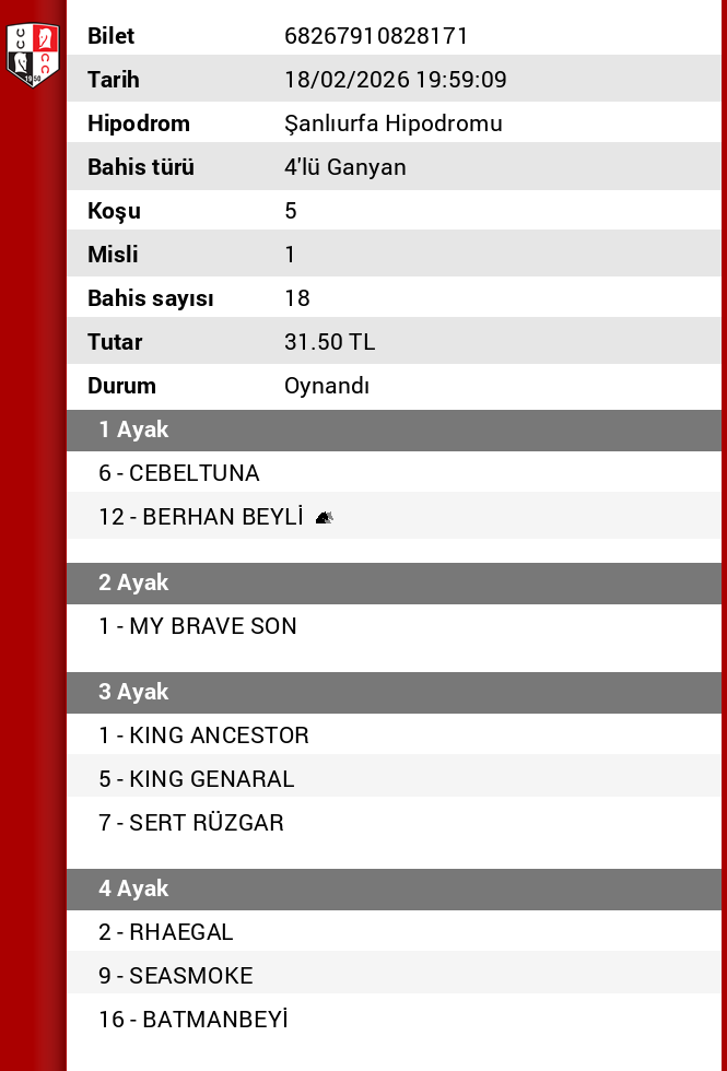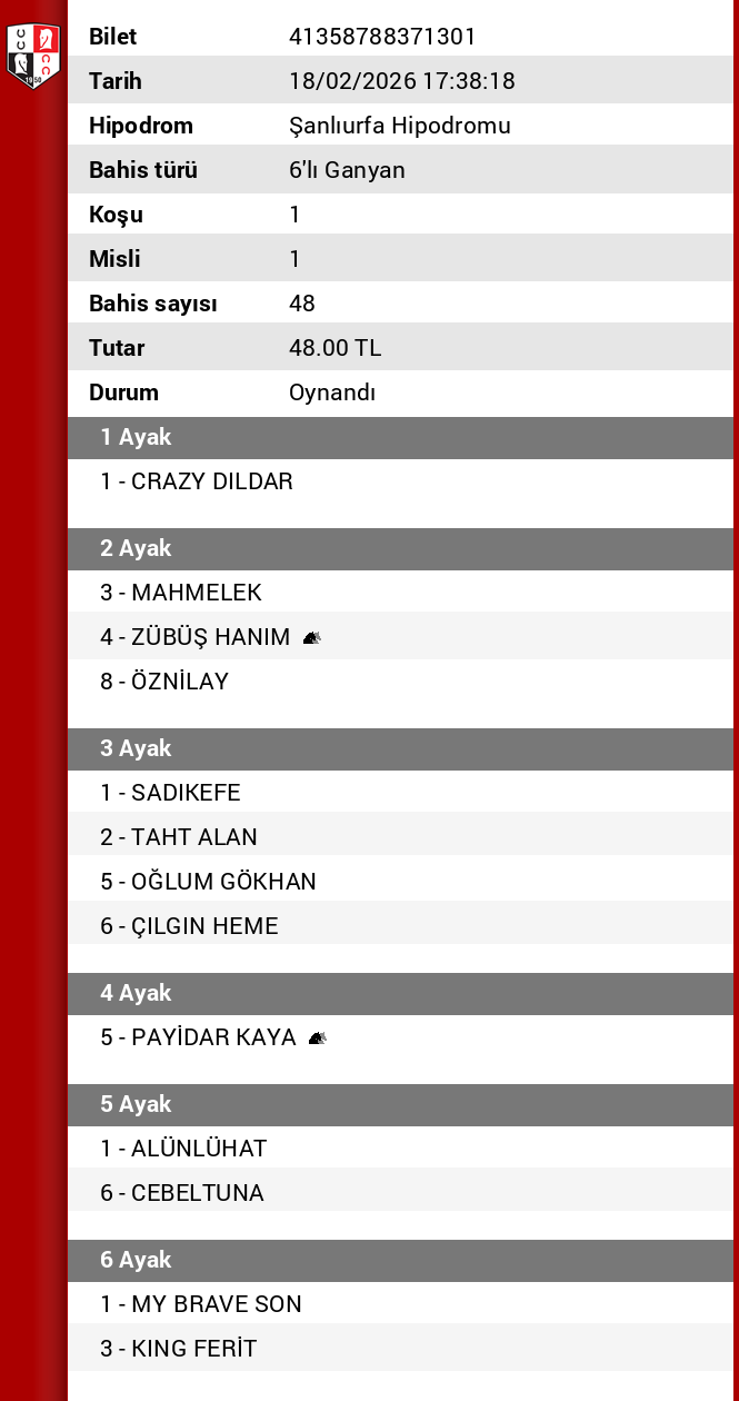 4 tekli tutturdugumuz 6’lilar oluyor. o doneme denk getirecegiz iste. TJK ya verdigimiz ve bundan sonra verecegimiz paralari yasal faizi ile birlikte tahsil edecegiz 😎 :) Portfoyumuzun bas kosesine bunu da eklemek lazim :) Yoksa gerisi TJK ile al gülüm ver gülüm, ziyadesi ile de al gülüm :)